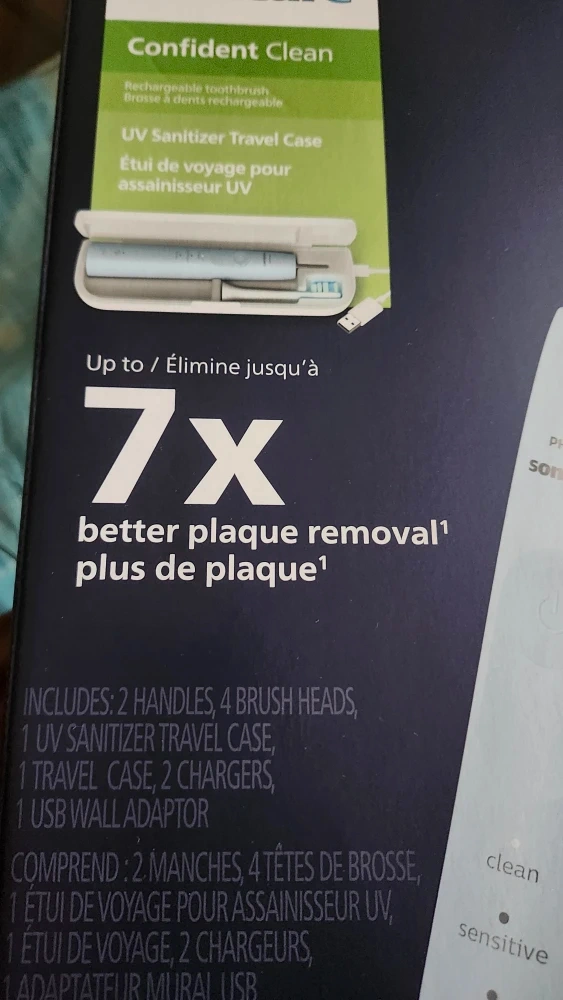 It boasts up to 7x better plaque removal compared to a manual toothbrush! The box is included