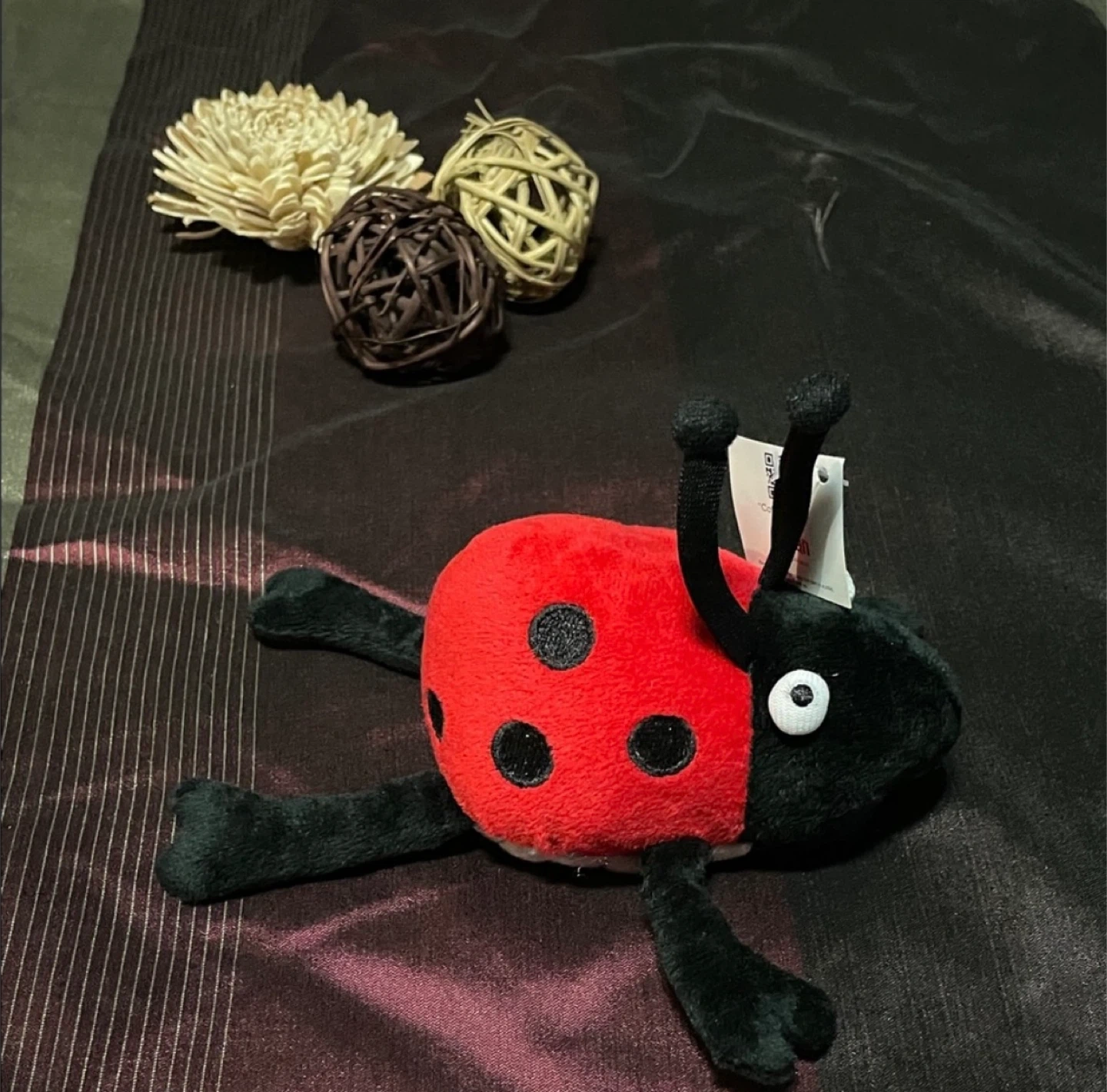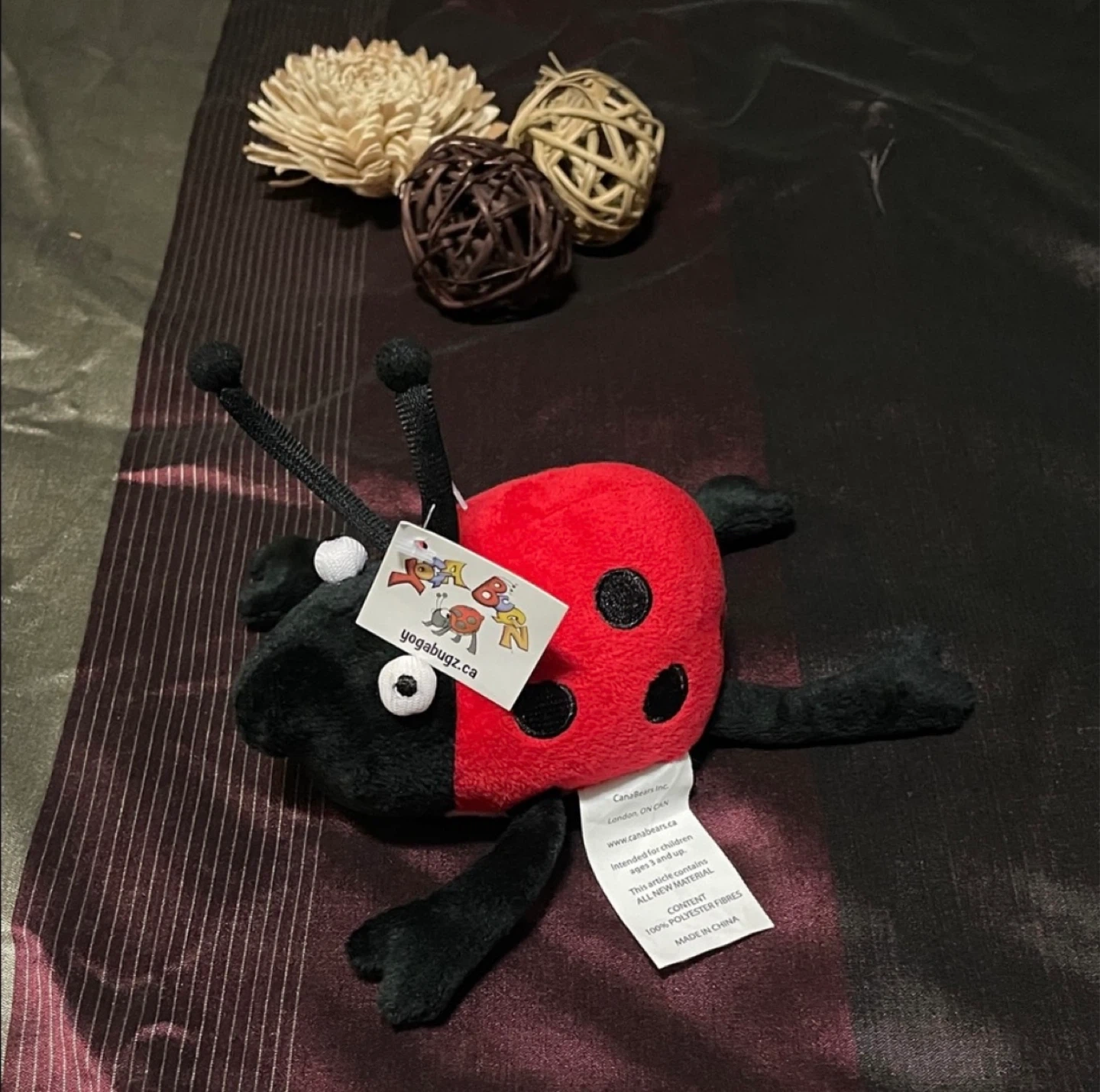 This is a YogaBugz plush ladybug toy. It's a cute and cuddly toy for kids of all ages. The legs bend giving it the « yoga » title. Brand new and in great condition