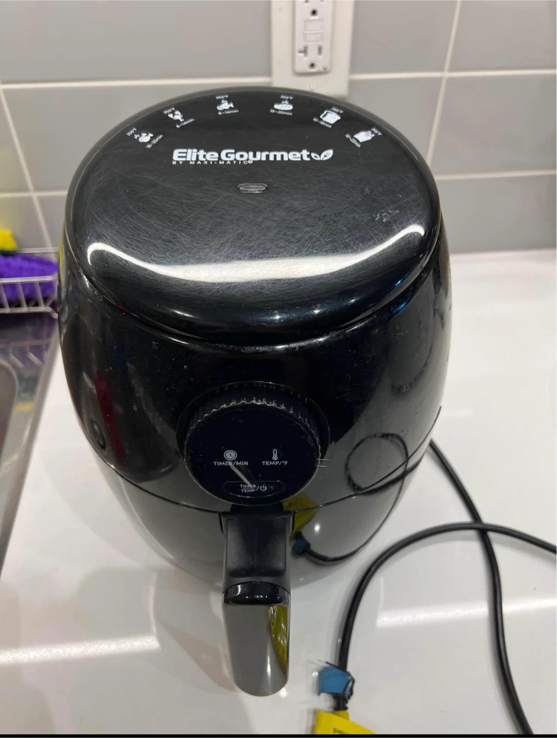 I'm selling an Elite Gourmet air fryer! It's in great condition and ready to help you make some tasty meals. This air fryer is perfect for cooking a variety of foods with little to no oil, offering a healthier alternative to traditional frying. It's easy to use and clean, making it a convenient addition to any kitchen
