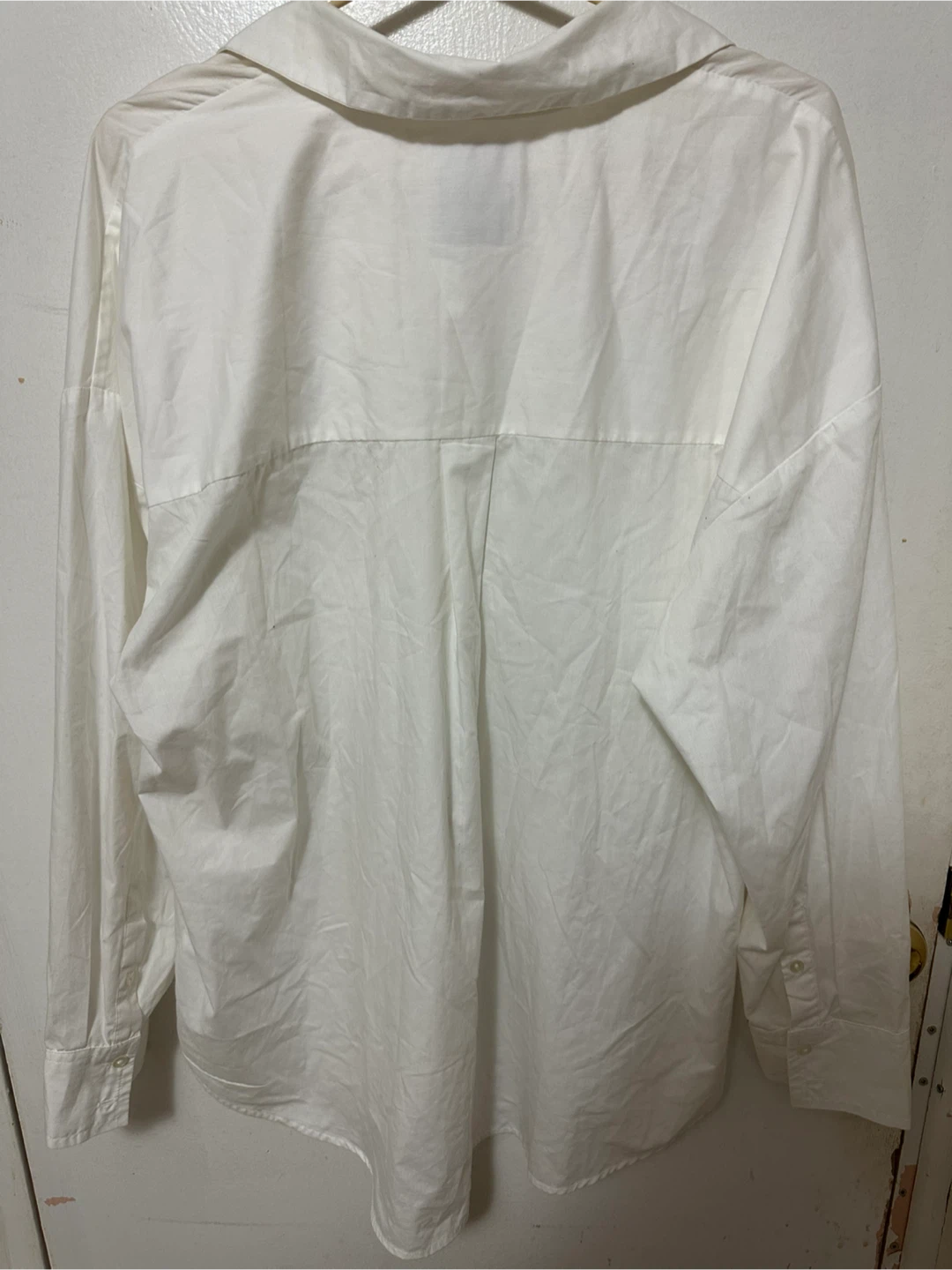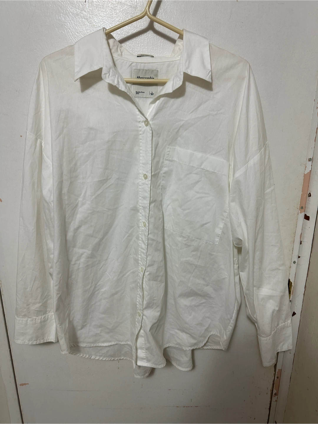 Selling a gently used Abercrombie & Fitch white button-up shirt. It's an oversized style and a size large. Perfect for a casual, comfortable look! Worn once