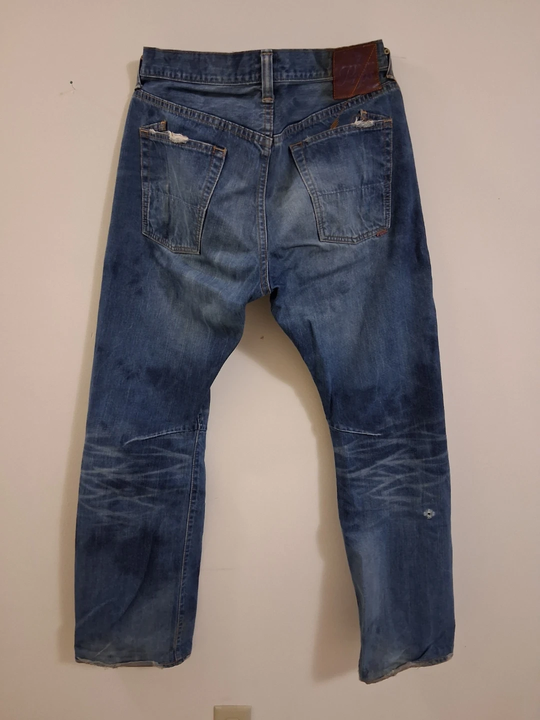 Selling a pair of PRPS jeans in size 33. They are made in Japan and are 100% cotton. They have a worn look with some distressing.