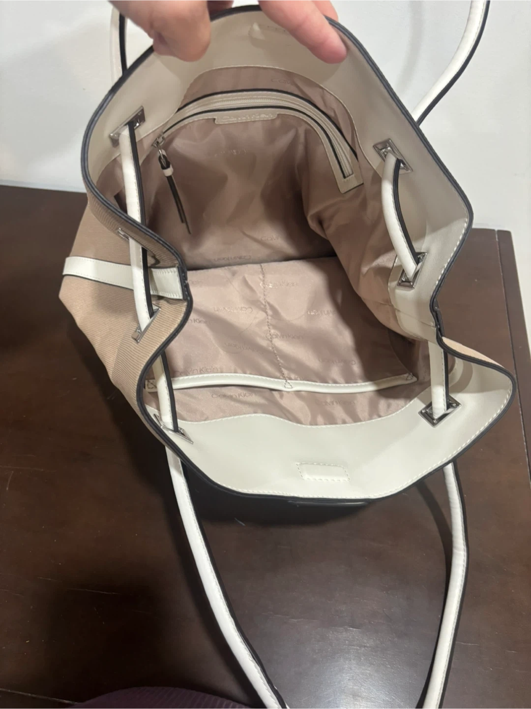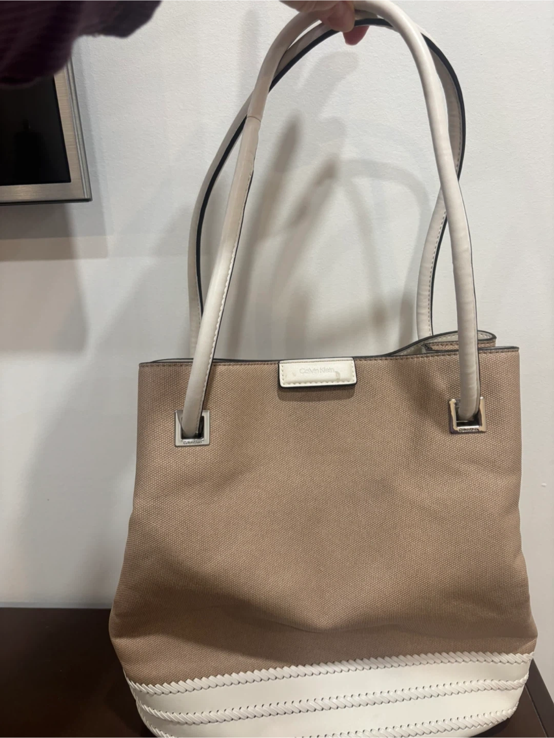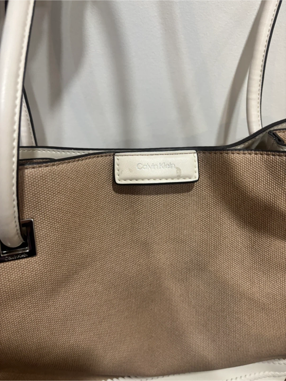 A stylish Calvin Klein tote bag in a lovely beige and white colour combination! It's in great condition and ready for a new owner. Perfect for everyday use or as a chic accessory for any outfit