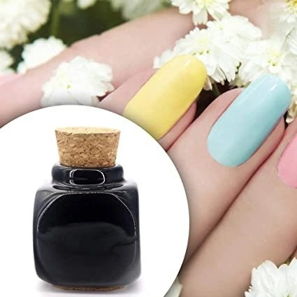 1 Pcs Tiny Porcelain Dappen Dish with Anti-evaporation Wooden Cork Top, Nail Art Acrylic Liquid Porcelain Dappen Cup Monomer Dappen Dish Glitter Powder Container Holder (Black).