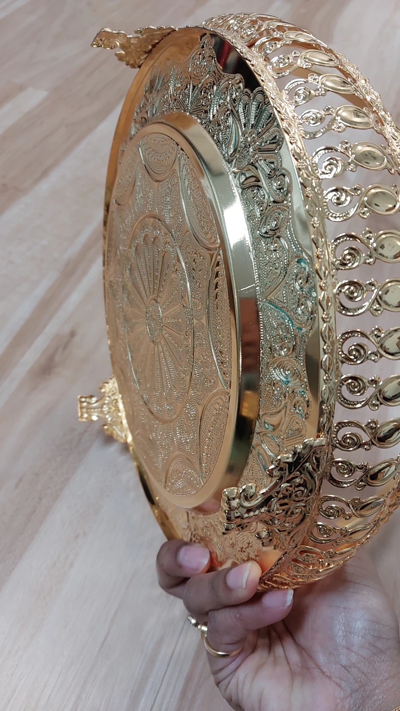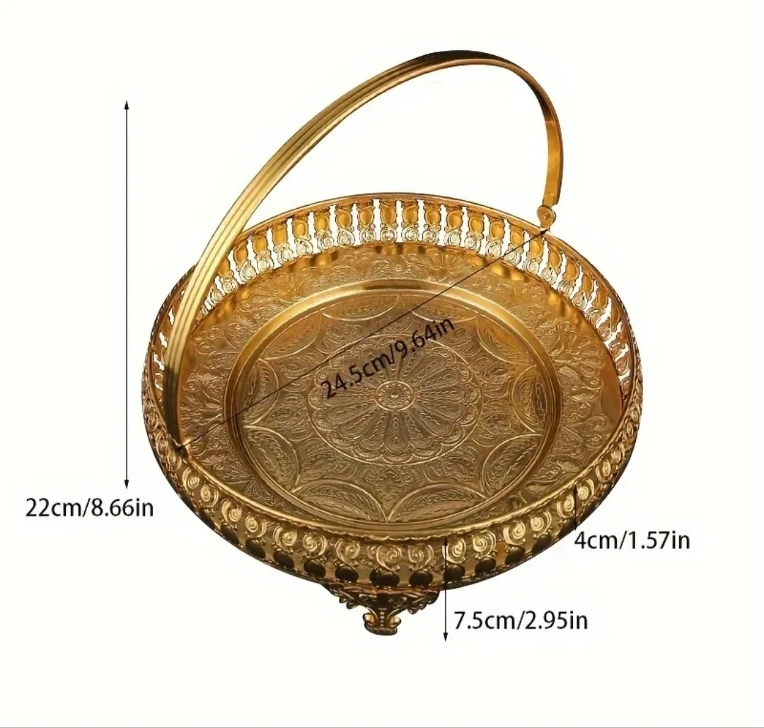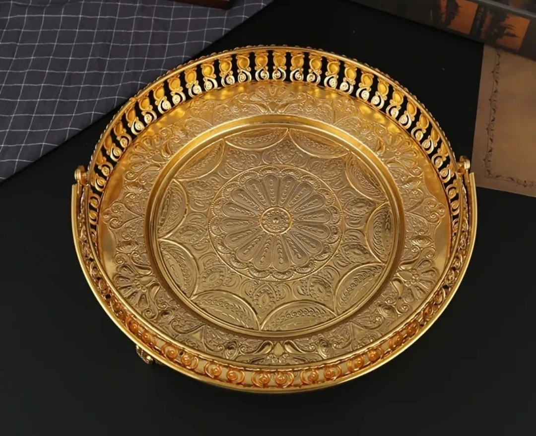 Selling a beautiful gold decorative tray with a handle! It's perfect for adding a touch of elegance to your home decor. The tray features intricate designs.