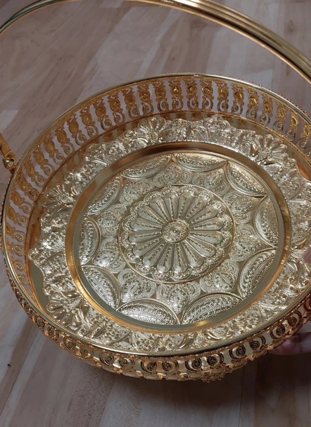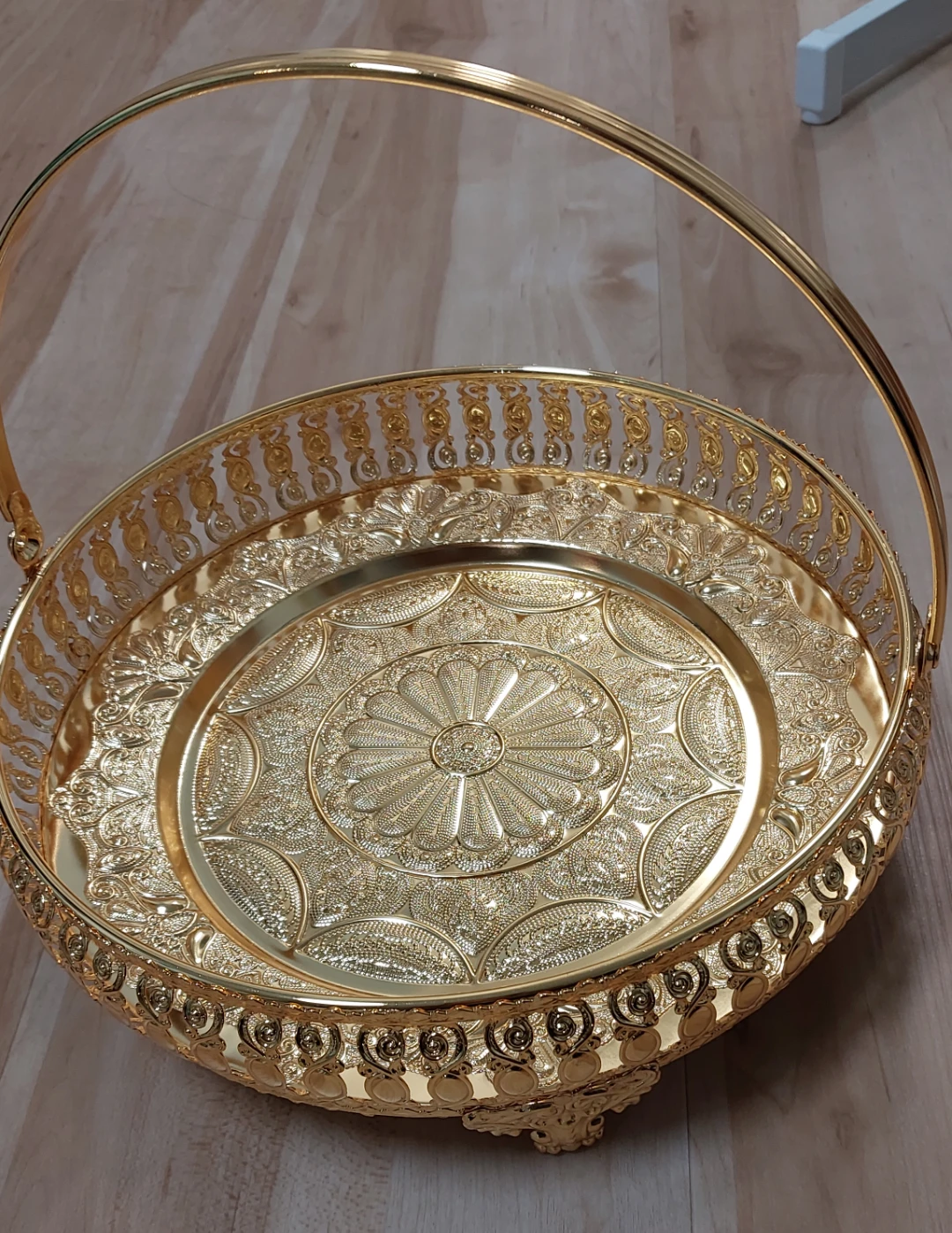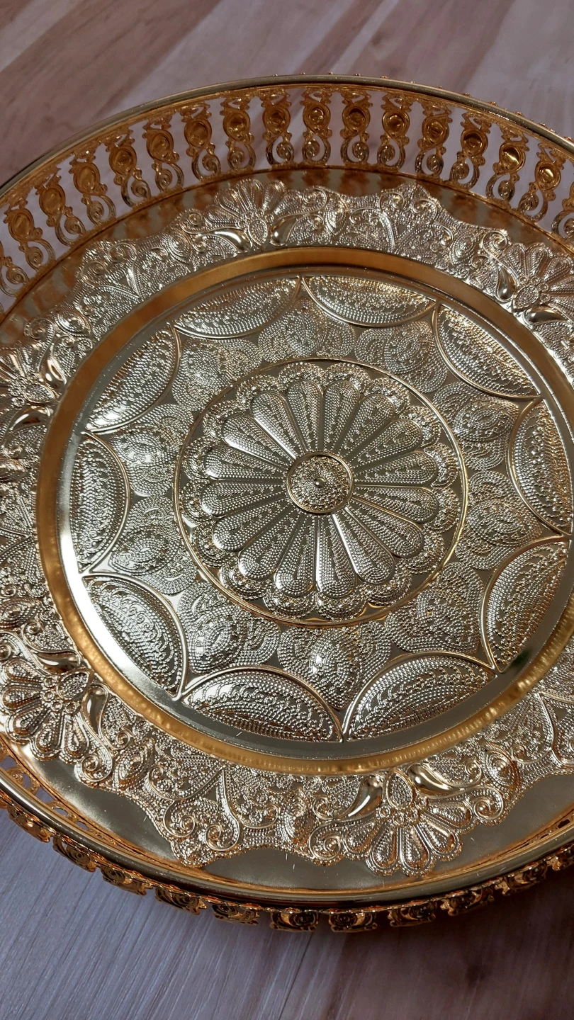 Selling a beautiful gold decorative tray with a handle! It's perfect for adding a touch of elegance to your home decor. The tray features intricate designs.