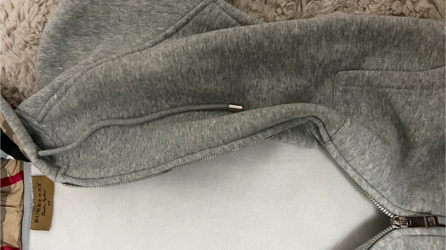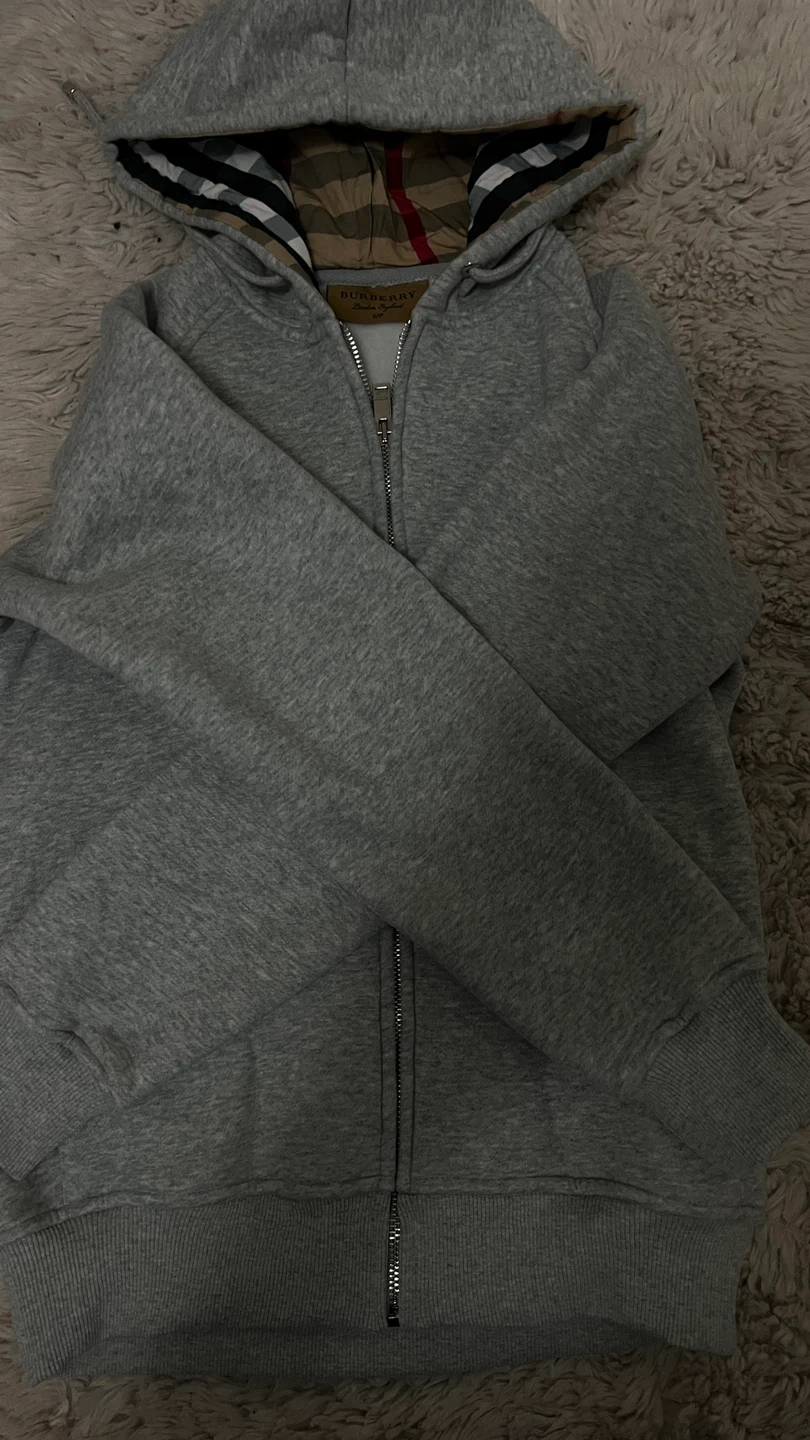 Selling a Burberry London England hoodie in a lovely grey colour. It's a size small and features the classic Burberry plaid on the inside of the hood. Great for adding a touch of luxury to your everyday wear!