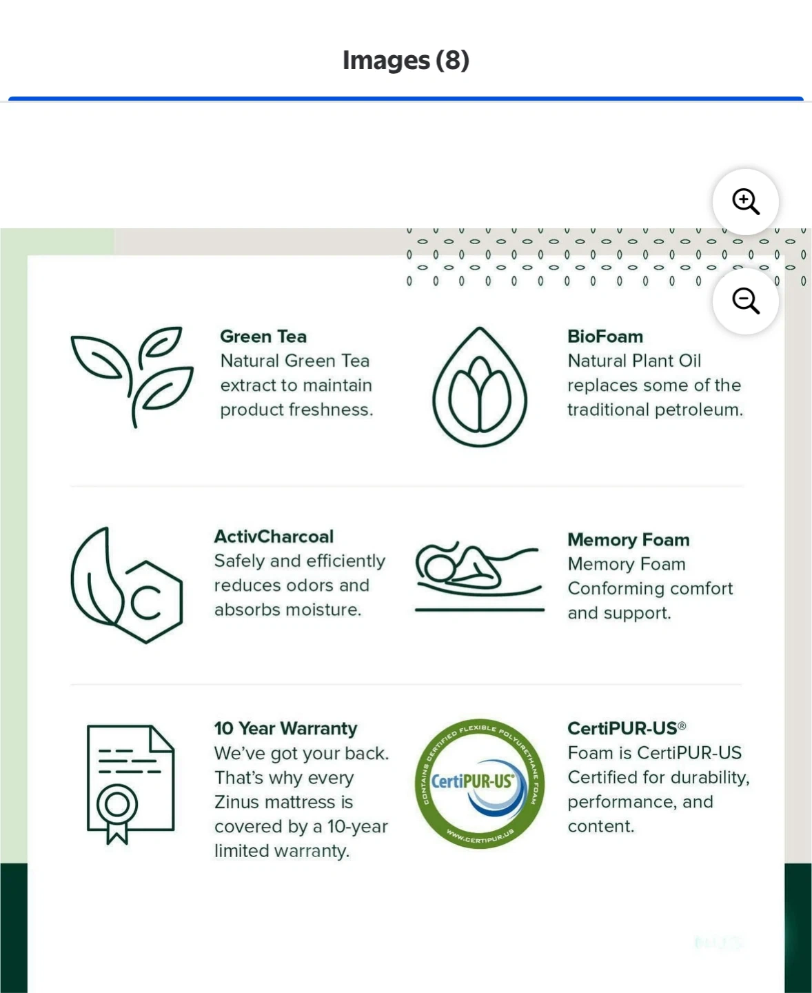 Zinus Spa Sensations 4 Inch Quilted Top Foam Mattress – Twin Size