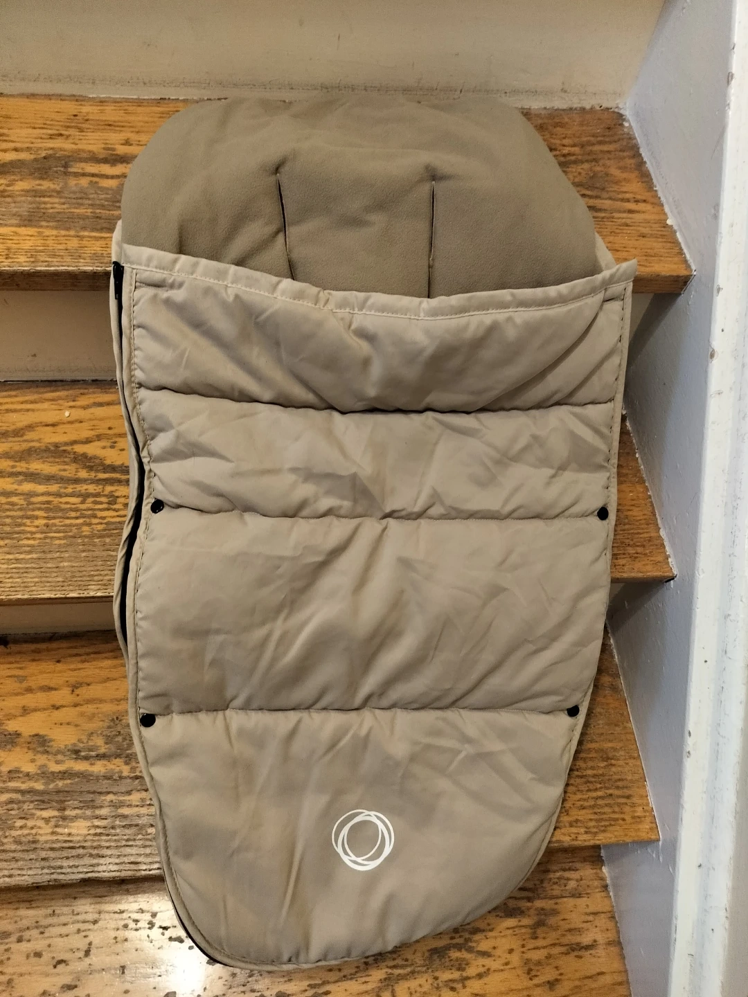 Selling a Bugaboo footmuff in sand color. It's in great condition and will keep your little one warm and cozy during those chilly days!