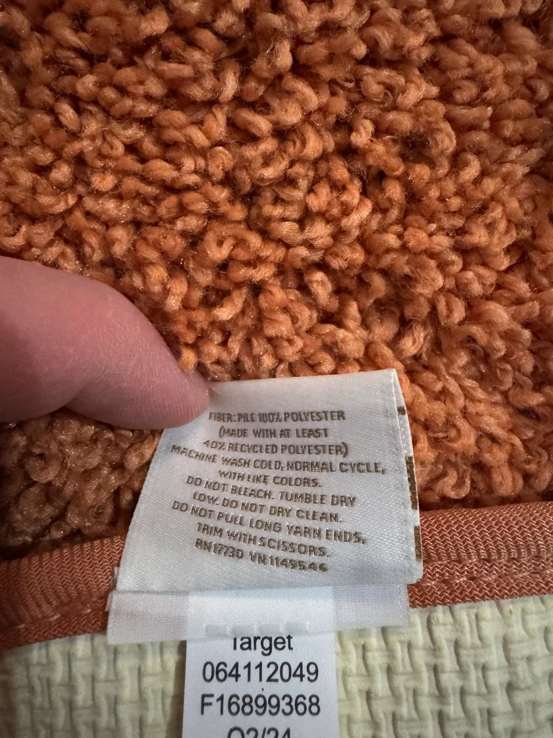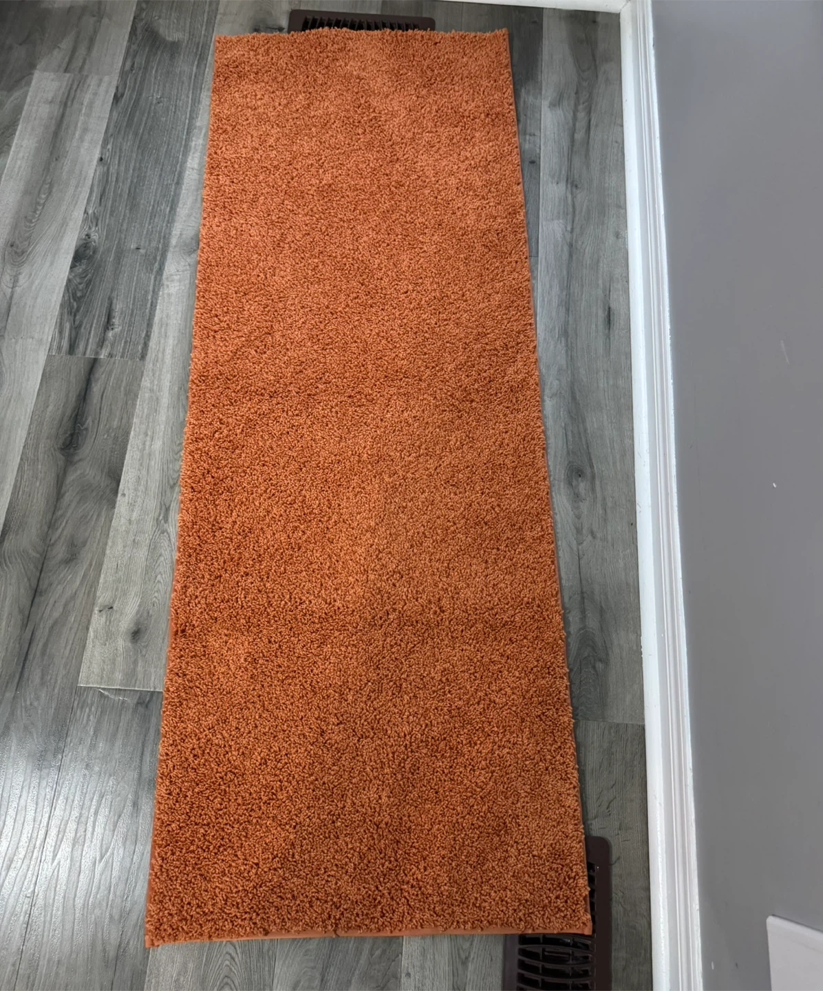 Selling a shag rug from Target! It's a vibrant orange colour and made of 100% polyester, with at least 40% recycled polyester. It's in great condition and ready to add some warmth to your space.