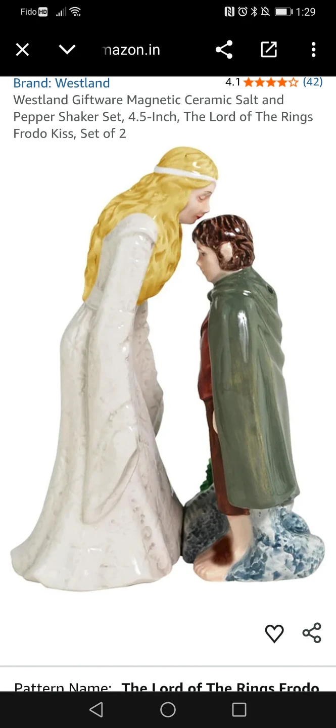 Westland Giftware Magnetic Ceramic Salt and Pepper Shaker Set, 4.5-Inch, The Lord of the Rings Frodo Kiss, Set of 2. These are in great condition!