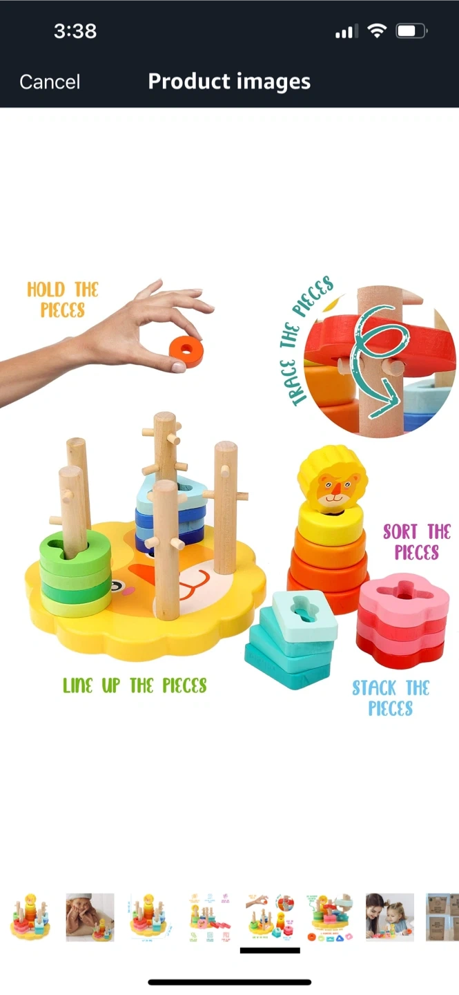 This wooden stacking toy is great for developing cognitive skills and fine motor skills! It helps with color and shape recognition, and learning to sort and count. Your little one can hold, trace, line up, and stack the pieces. It includes one stacking wooden board base and 5 geometric shapes.