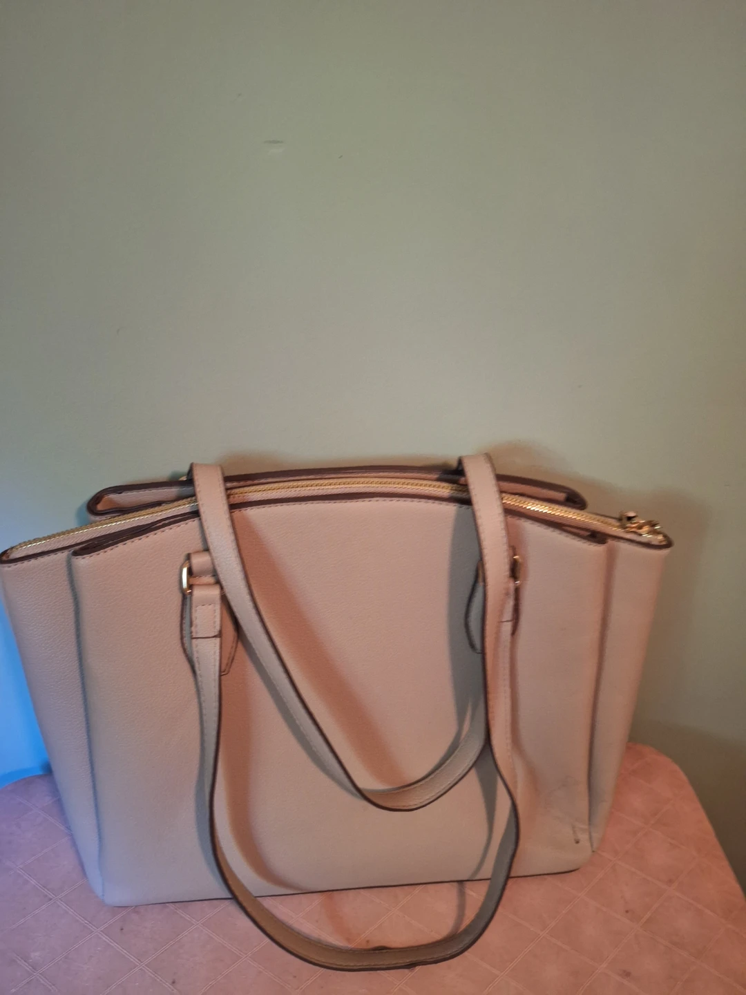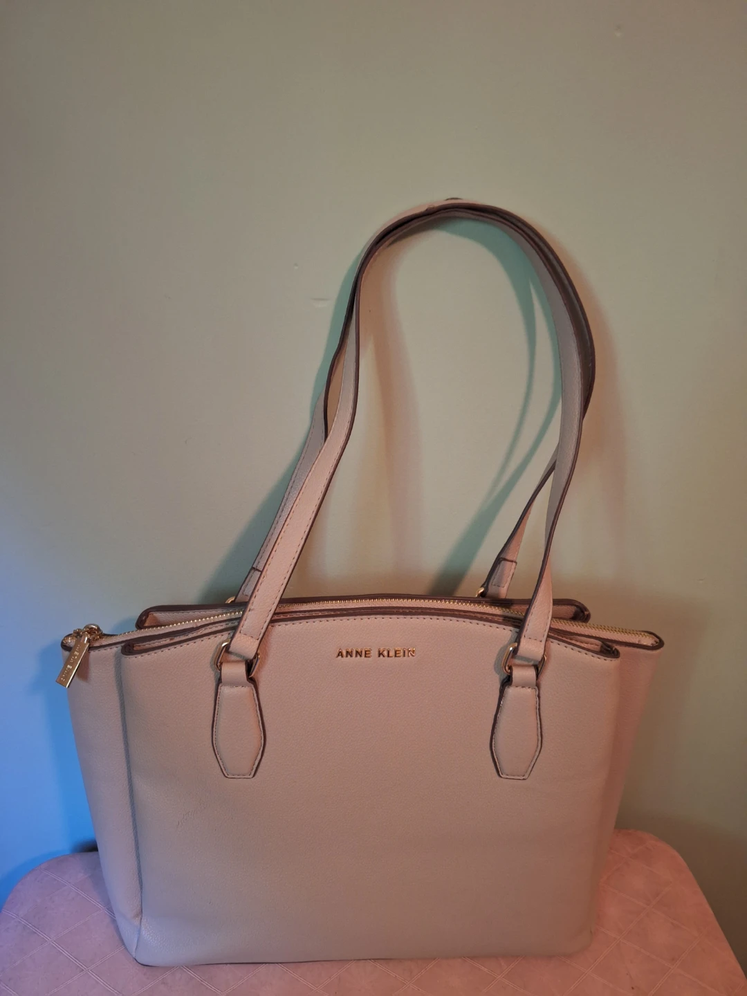 This is a lovely beige tote bag from Anne Klein. It's a great size for everyday use and is in good condition. Perfect for carrying your essentials around town! Was only used for 6 months. Great condition.