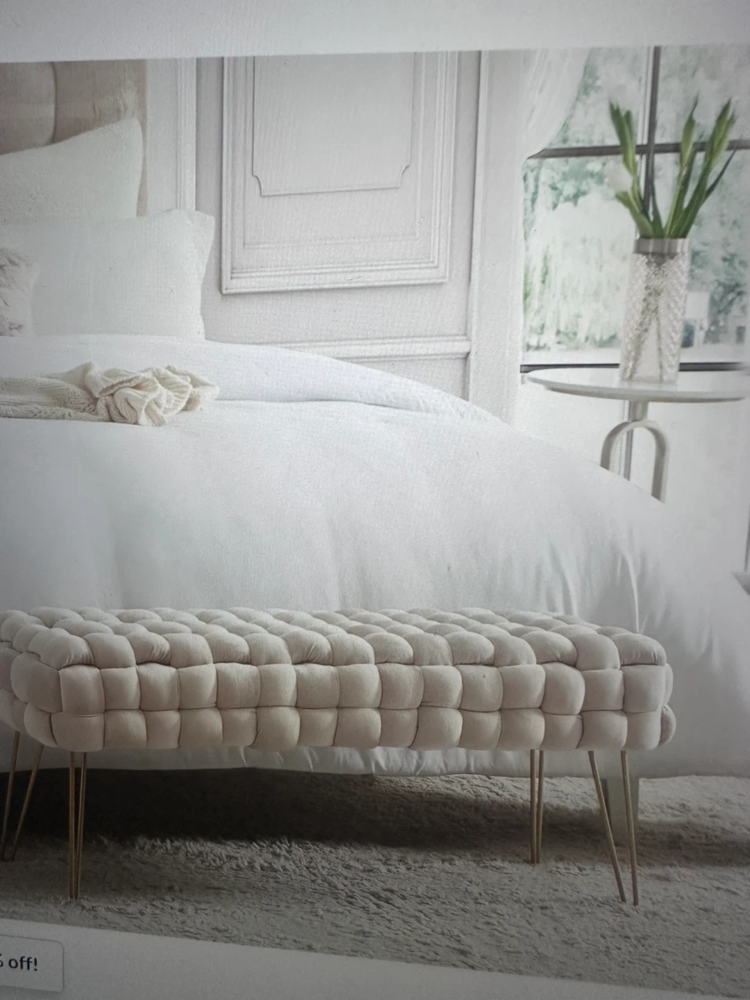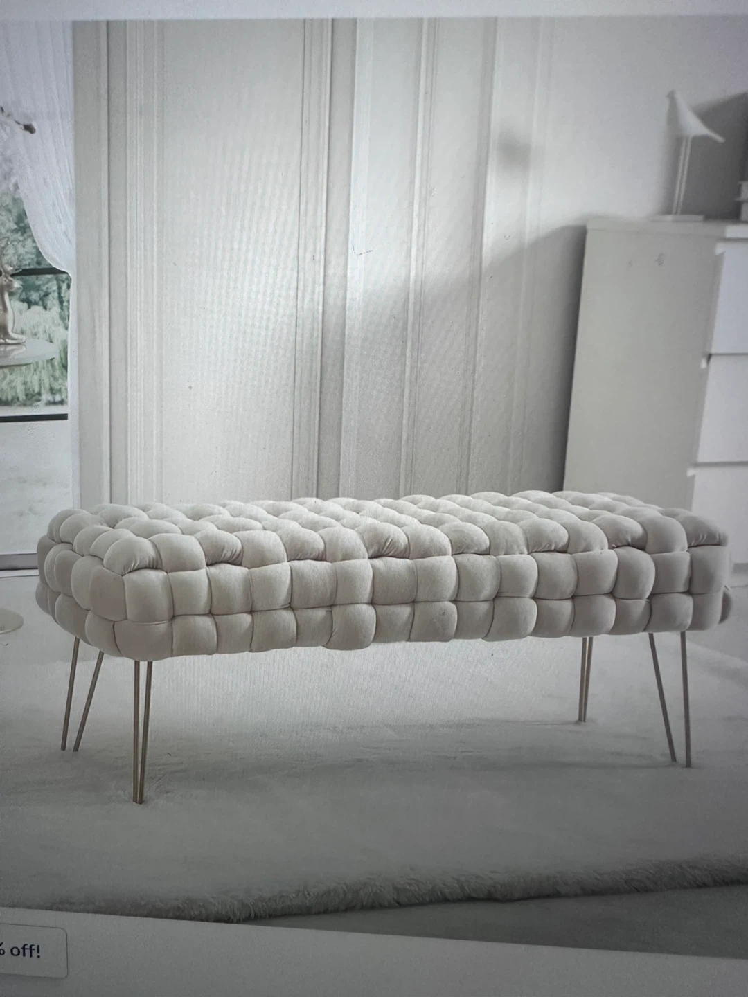 Beige Tufted Bench with Gold Legs