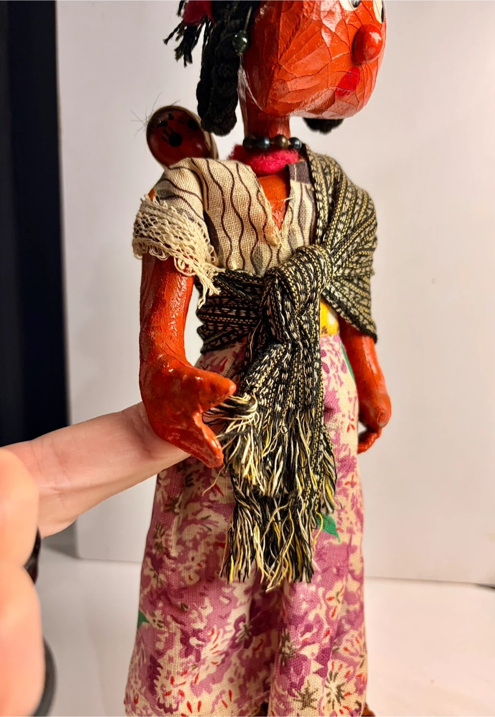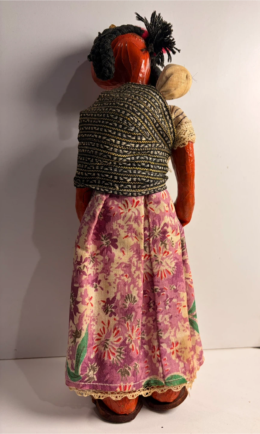 She is carrying her baby in a sling over her back. It is a charming addition to any folk art collection!