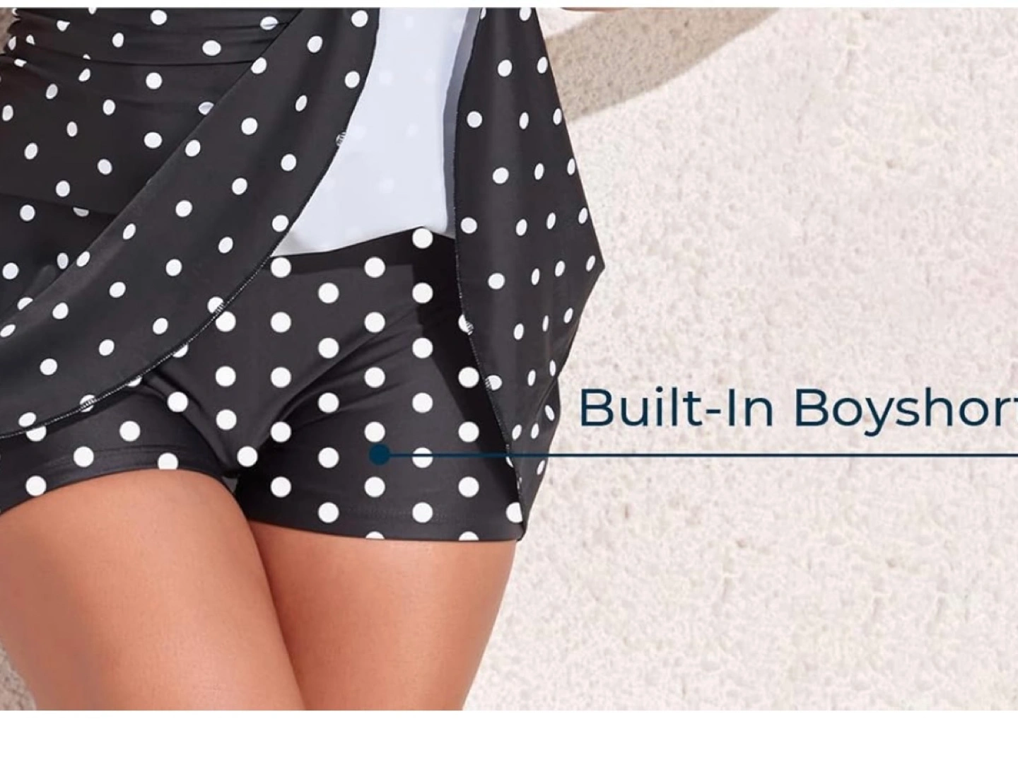 Cute polka dot swim dress from Summer Mae! It's a size large and features a built-in boyshort for extra coverage. Perfect for vacations,a day at the beach or pool