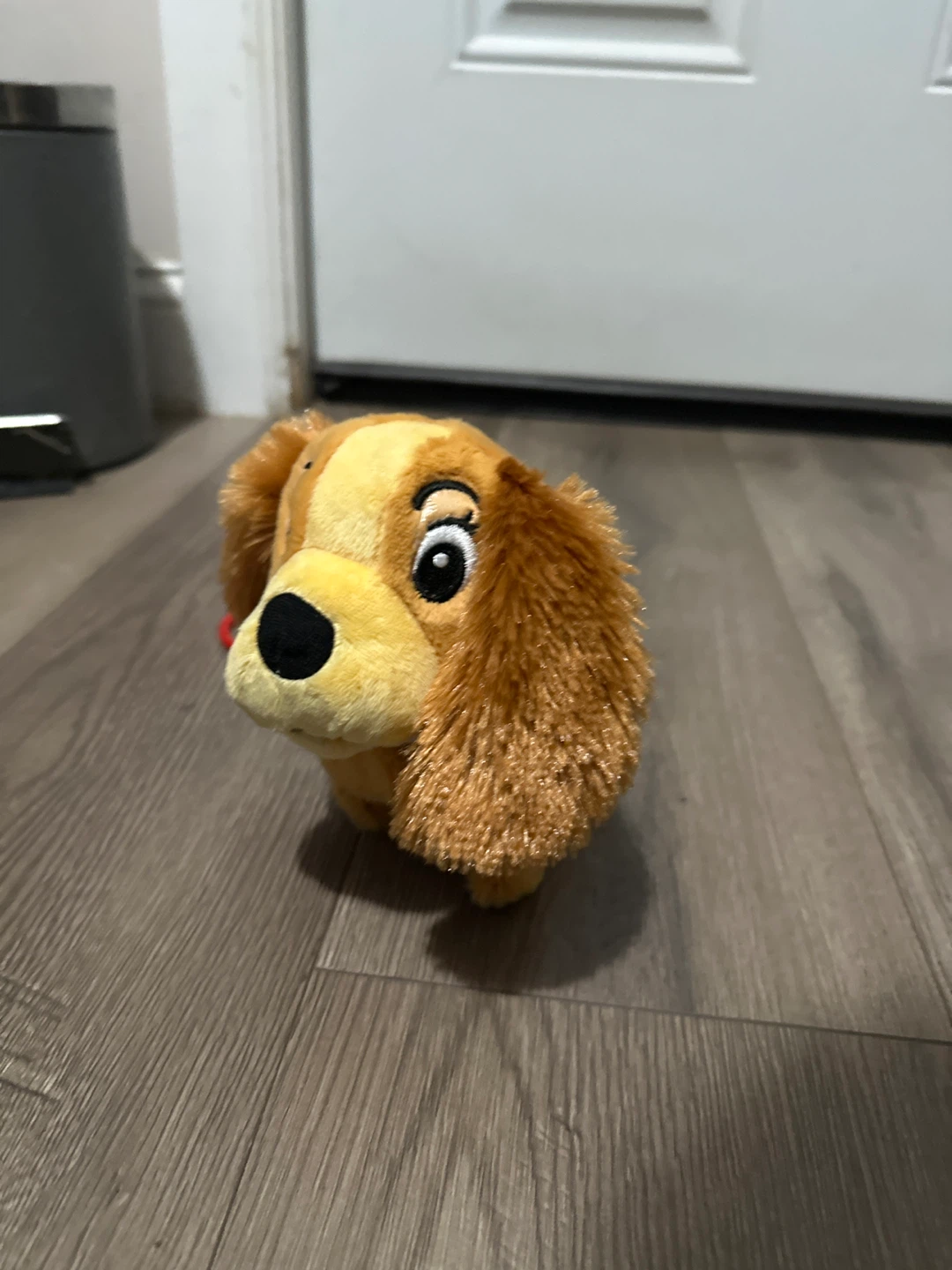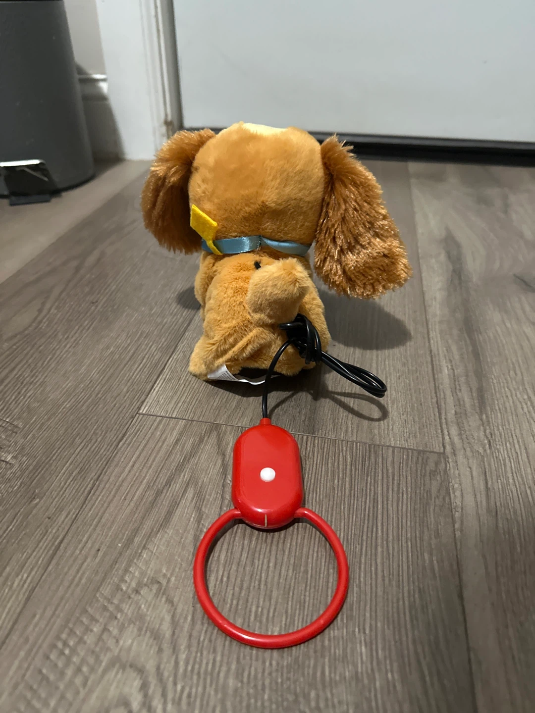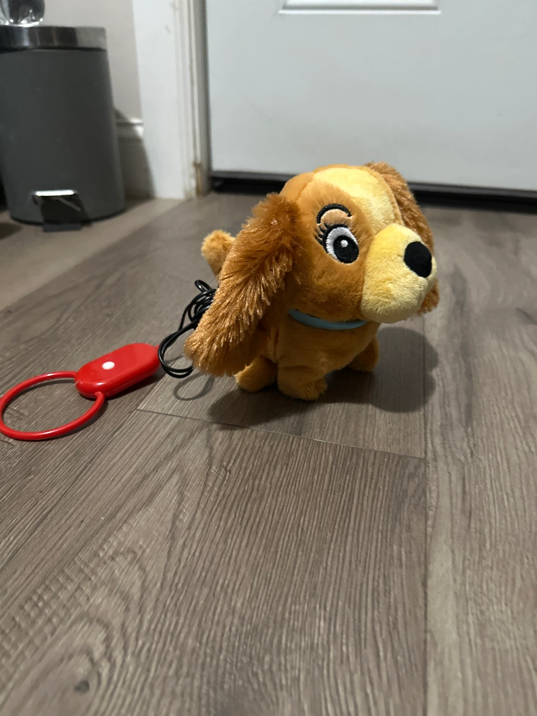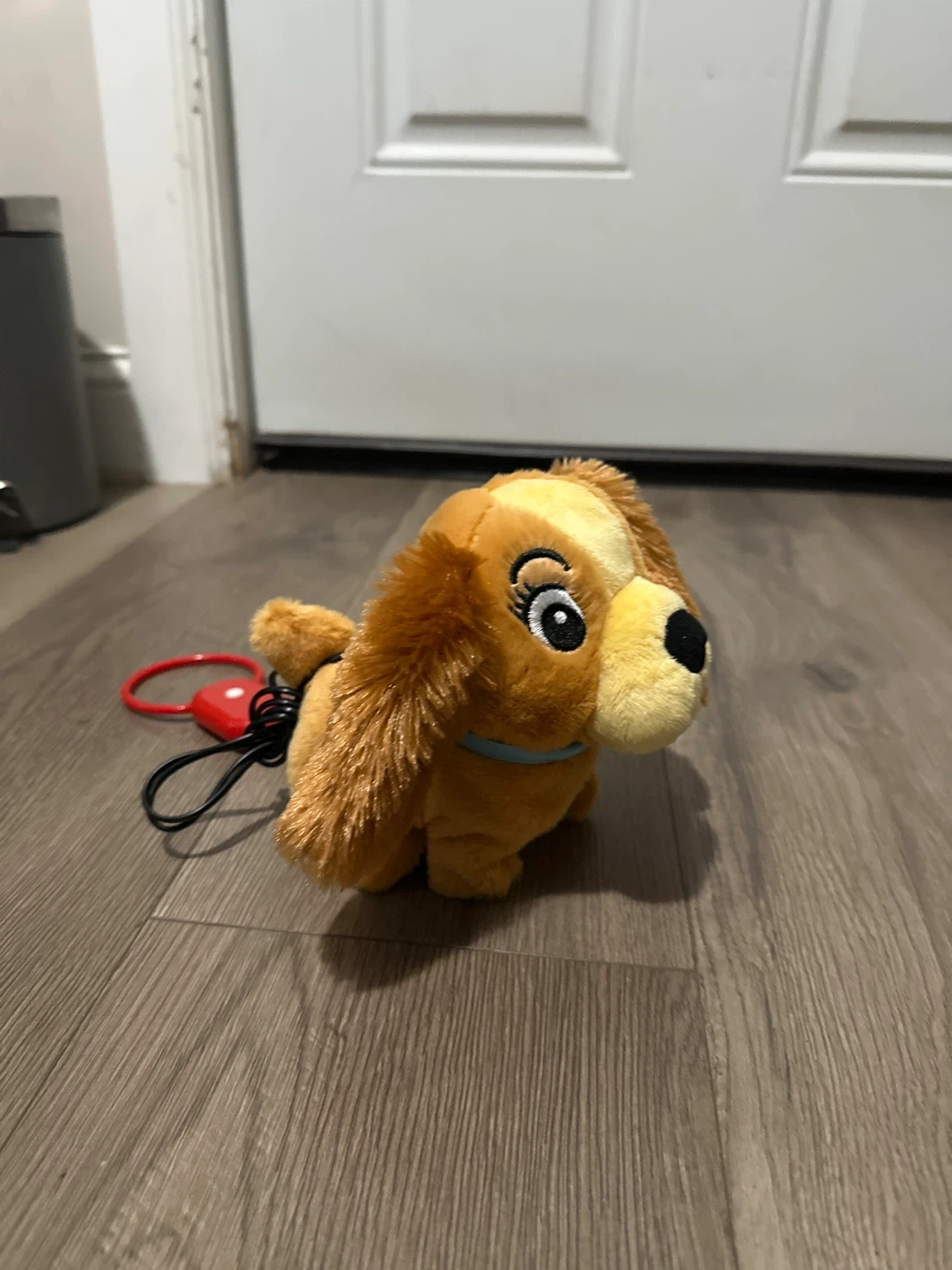 Cute walking dog plush toy! It's in great condition and ready for a new friend. The toy has a red leash-like handle attached to the back. Perfect for kids!