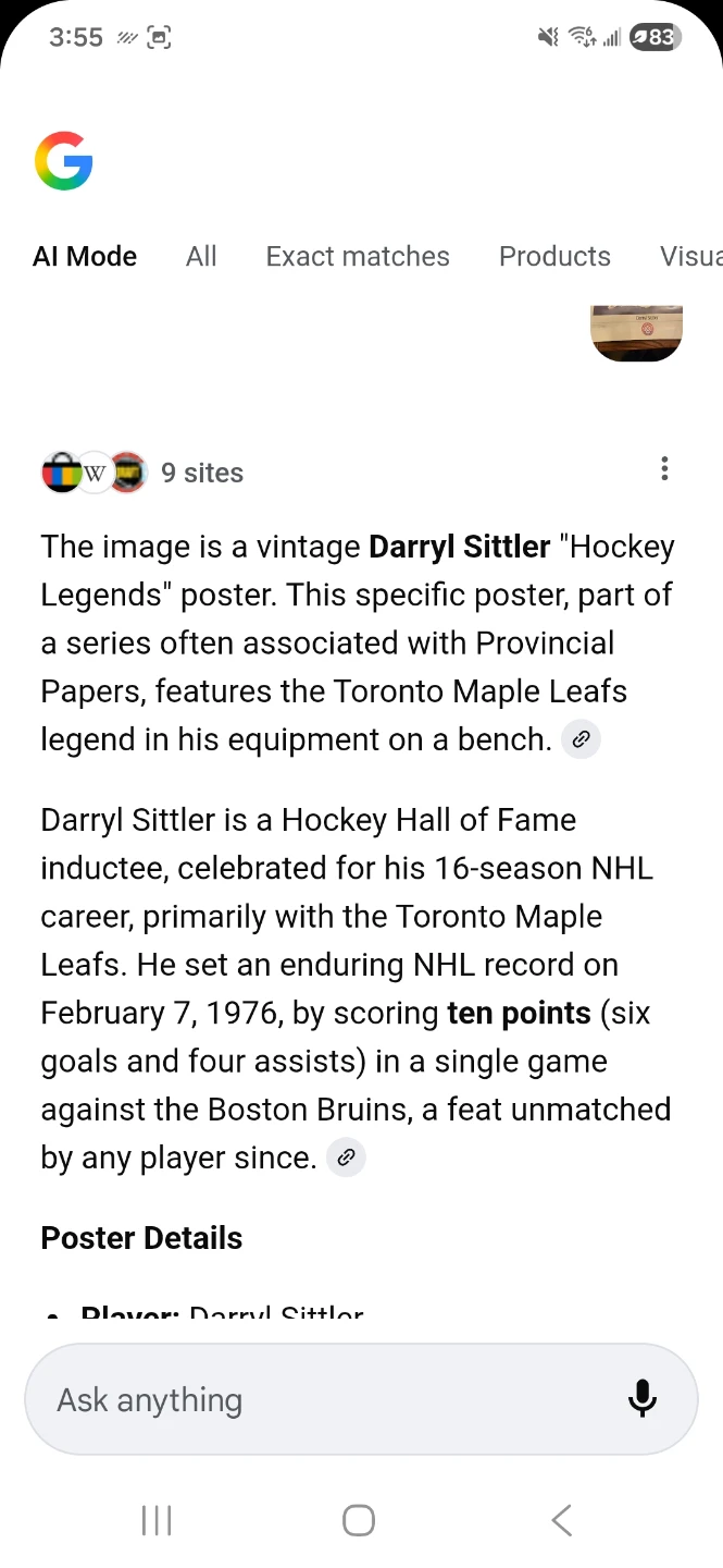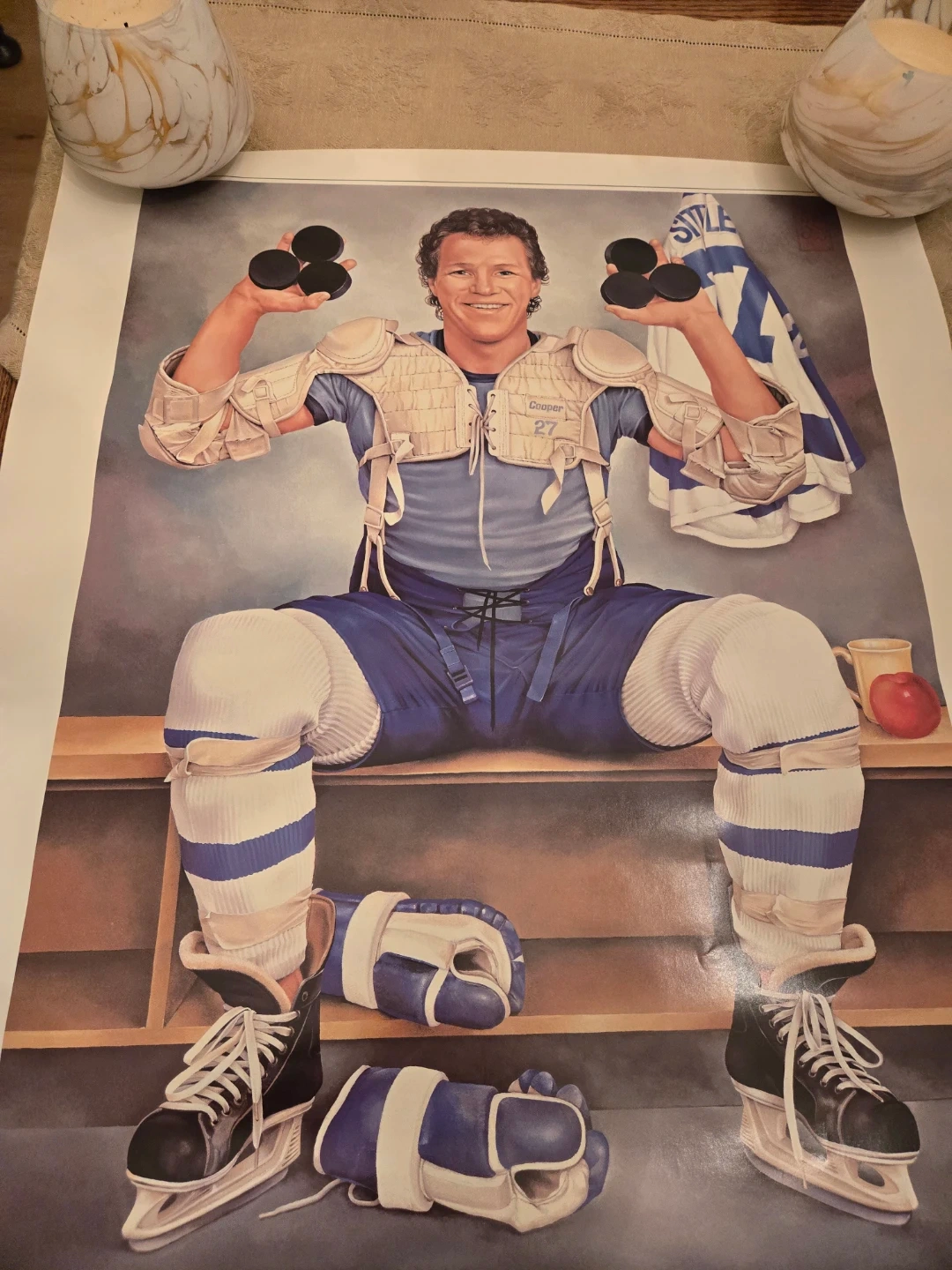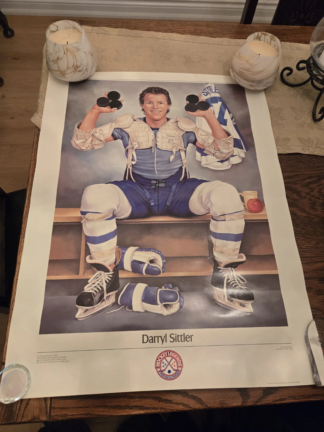 Selling a vintage Darryl Sittler "Hockey Legends" poster! This specific poster is part of a series often associated with Provincial Papers. It features the Toronto Maple Leafs legend in his equipment on a bench. A great piece for any hockey fan! Great condition unframed.