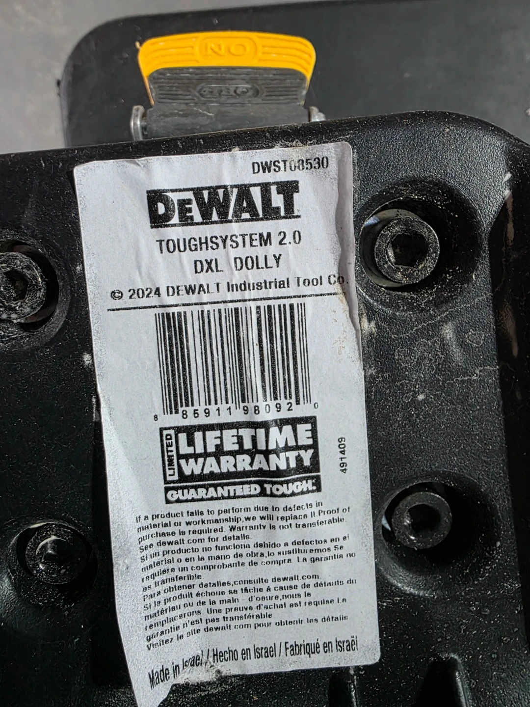 Selling a DeWalt ToughSystem 2.0 DXL Dolly. This dolly is part of the ToughSystem 2.0 line, designed for durability and easy transport of your tools and equipment. The dolly features a lifetime limited warranty, so you know it's built to last! Perfect for any job site or workshop.