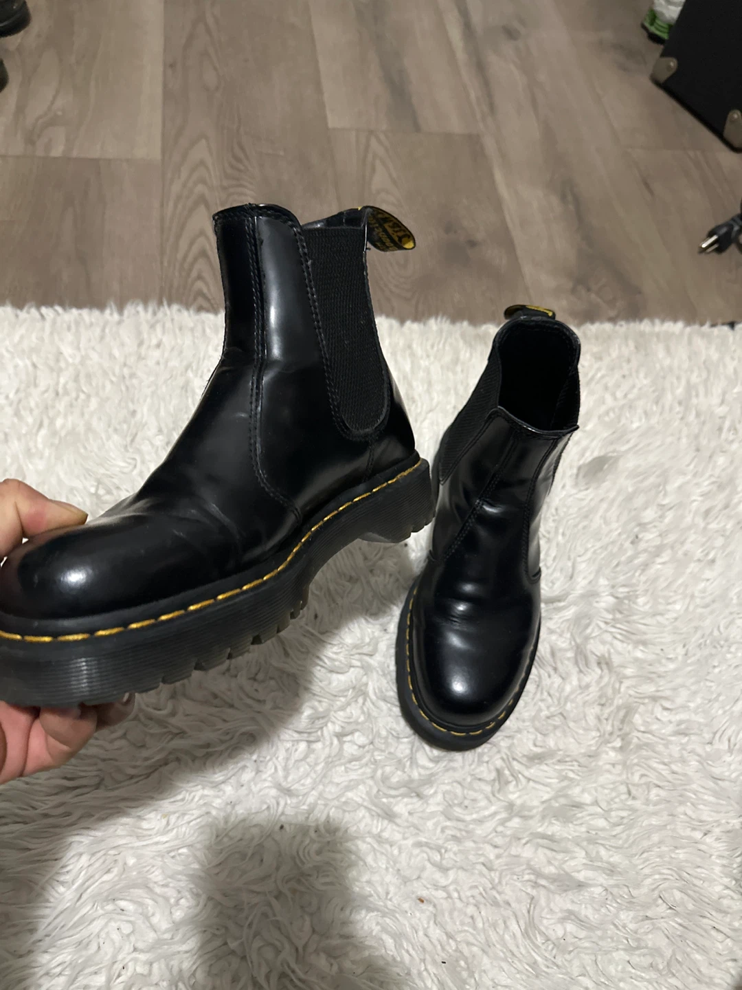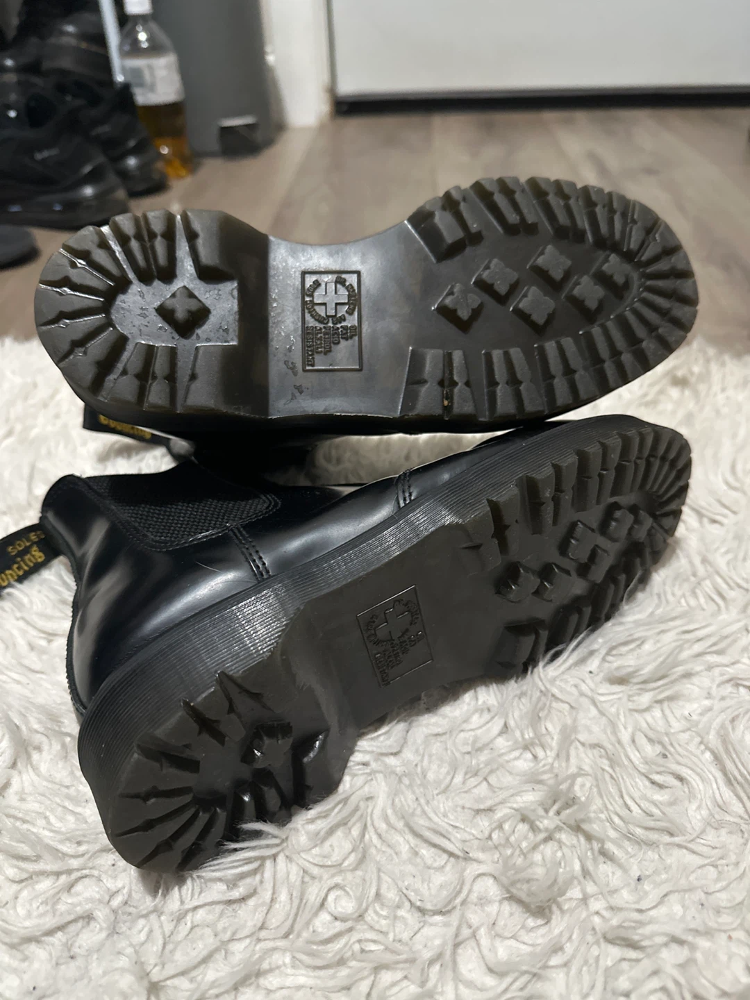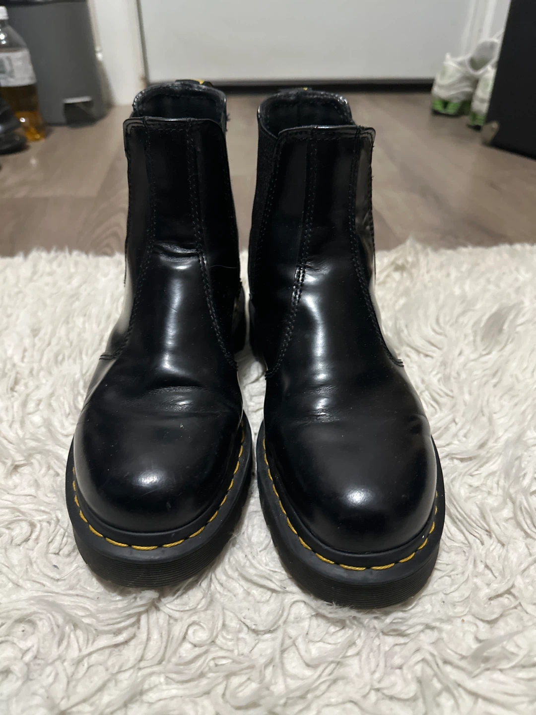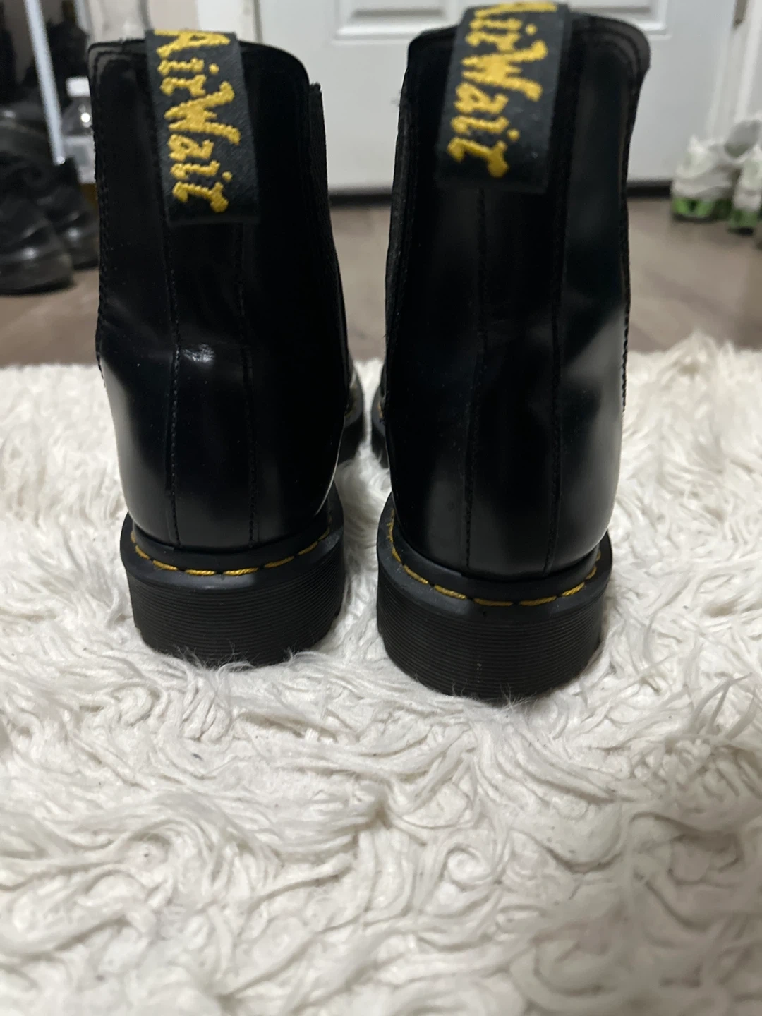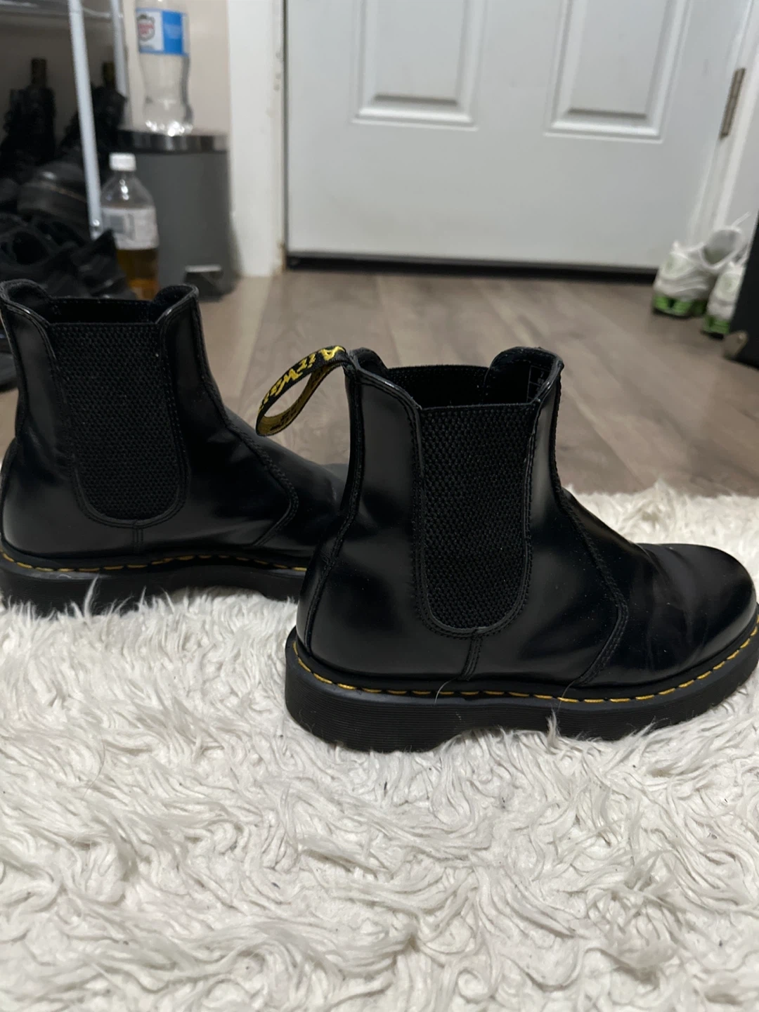 Selling a pair of Dr. Martens 2976 Chelsea boots in black. They are in good condition and have the classic Dr. Martens look with the yellow stitching. These are a stylish and durable choice for everyday wear