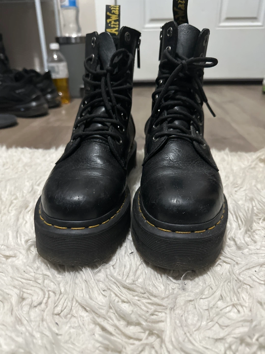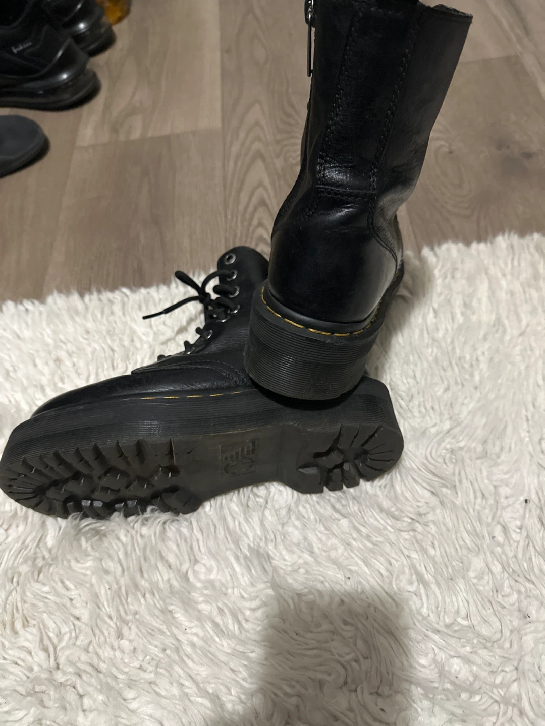 They have a lace-up closure and a zipper on the side. They are in used condition, but have a lot of life left!
