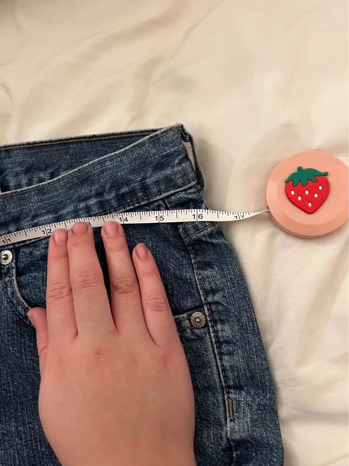 Waist: 32 inches (jeans are more low - mid waist when worn)