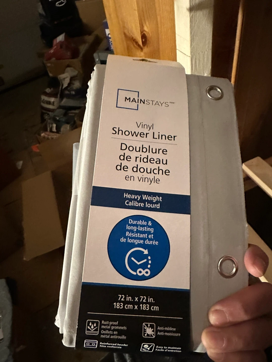 Selling a Mainstays vinyl shower liner. It's 72 inches by 72 inches (183 cm x 183 cm). It's heavy weight, durable, and long-lasting. Also, it's rust-proof and anti-mildew