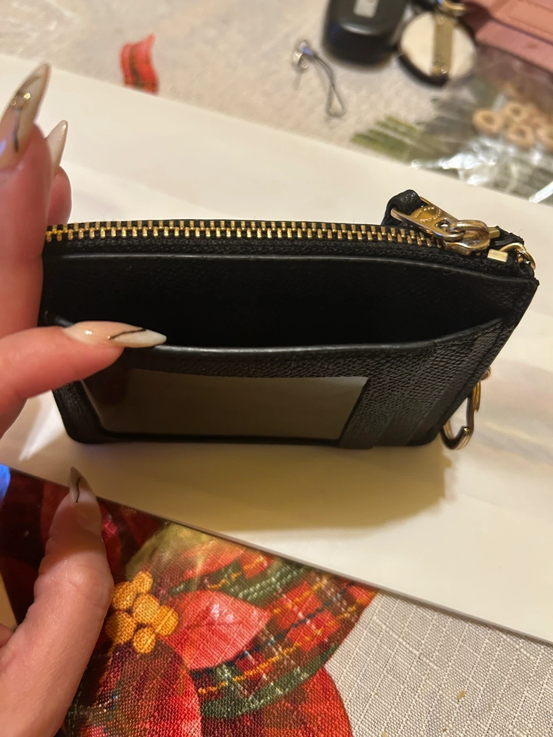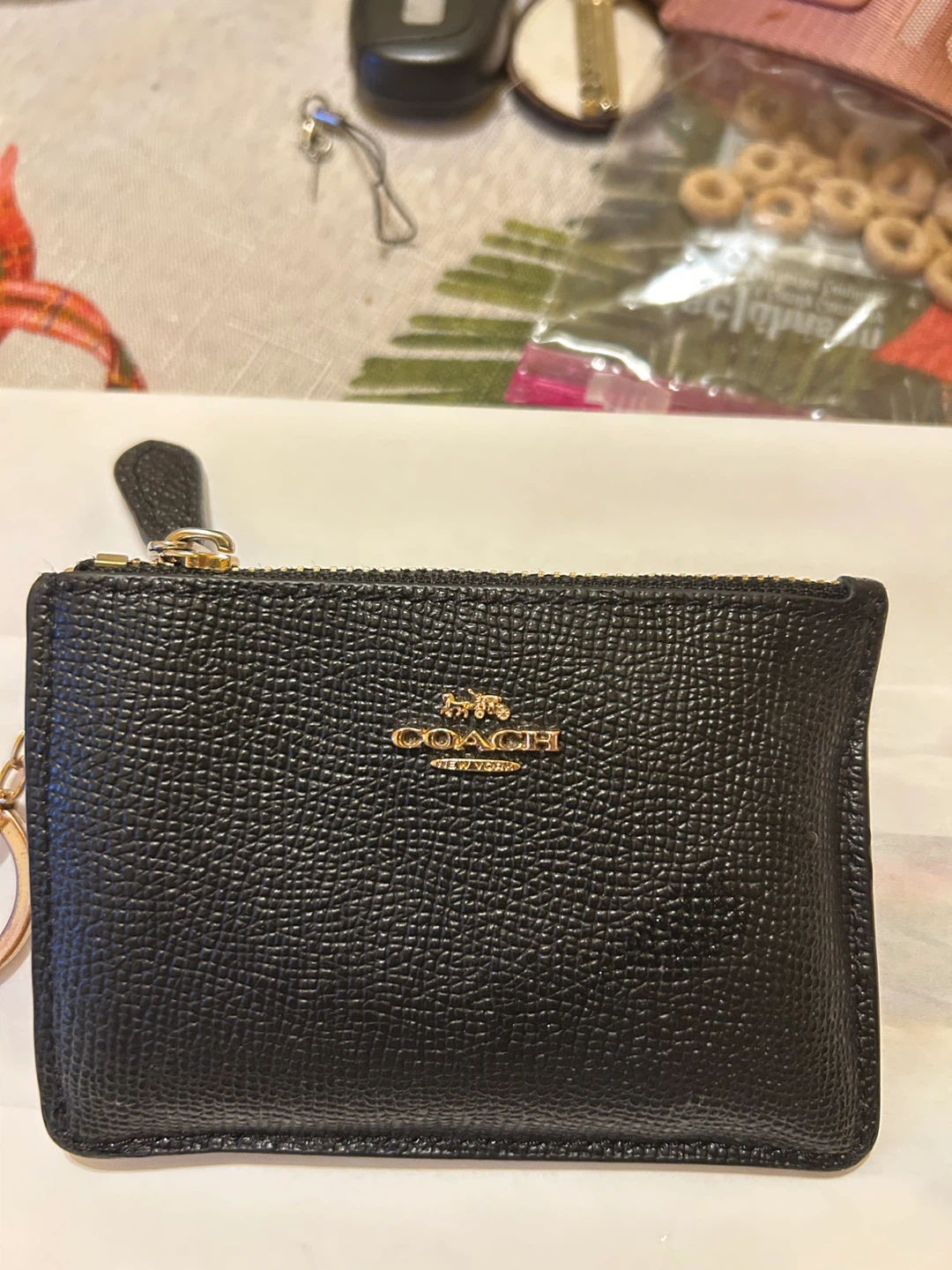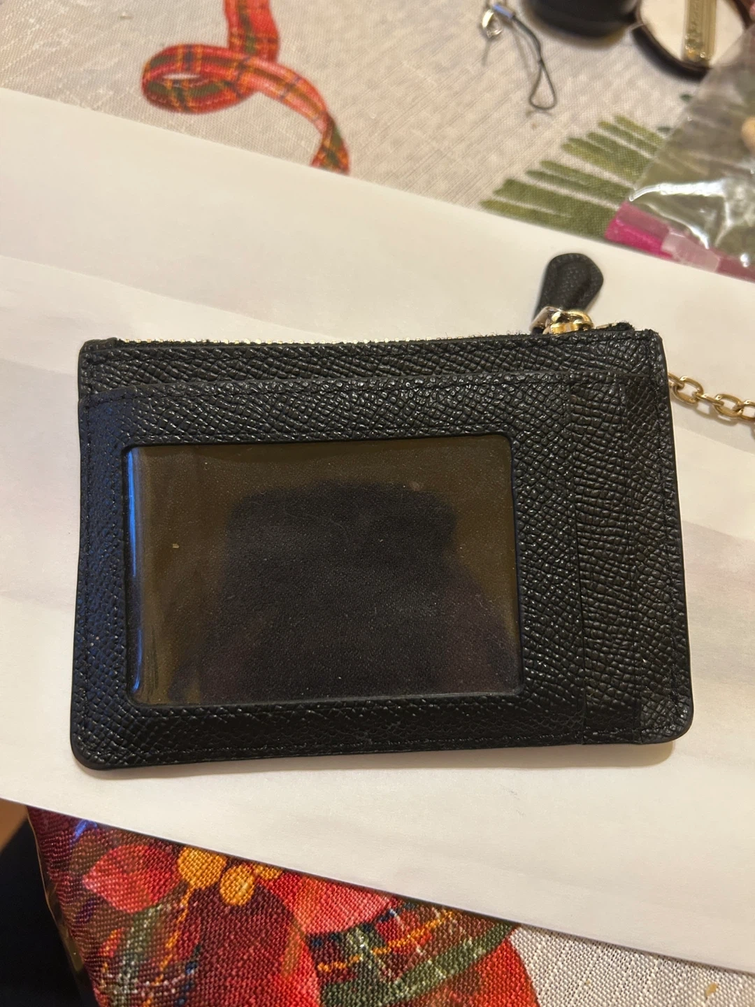 Selling a gently used Coach coin and card case. It's black leather with a zip-top closure and a clear ID window on the back. Perfect for carrying your essentials!