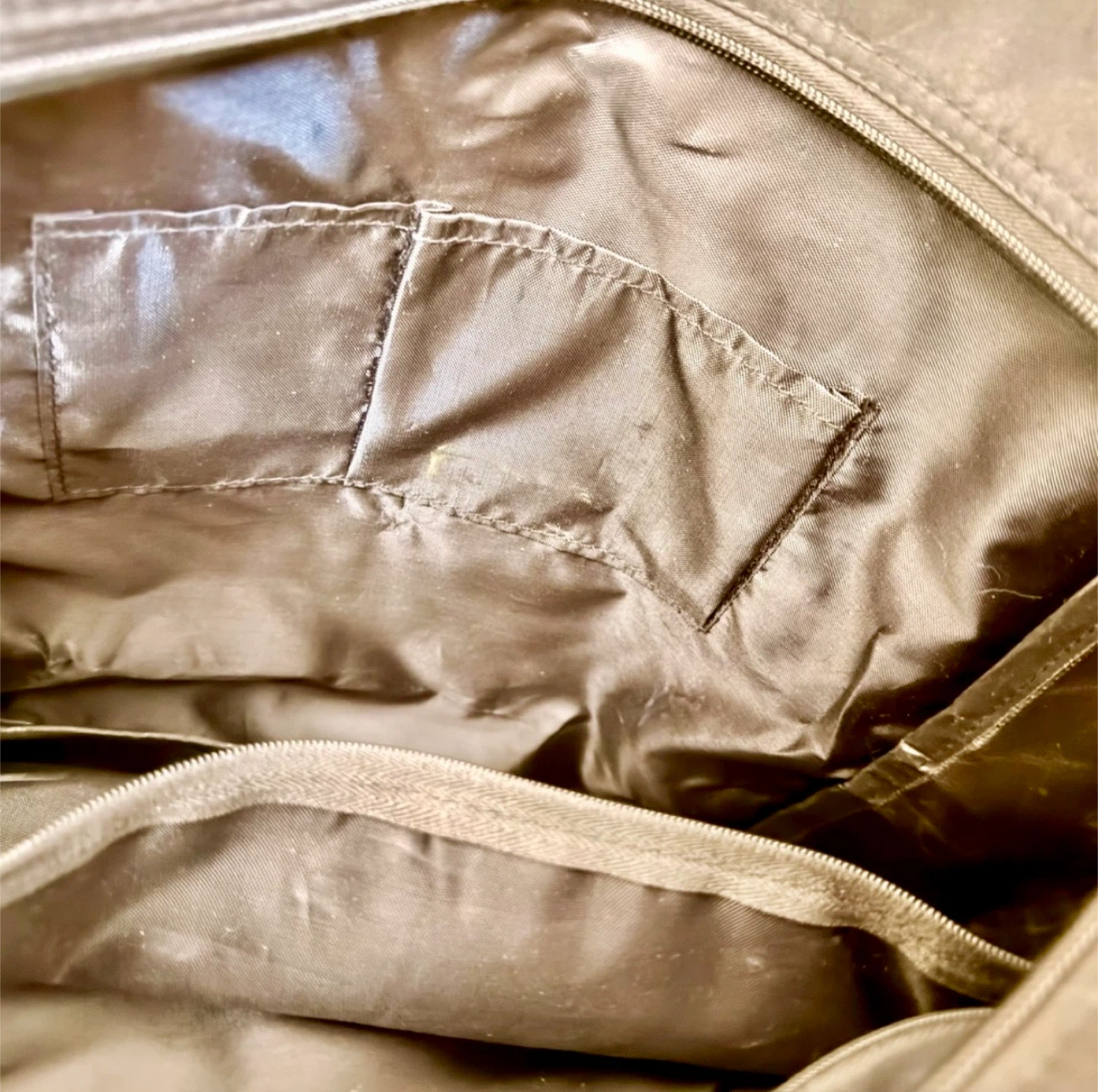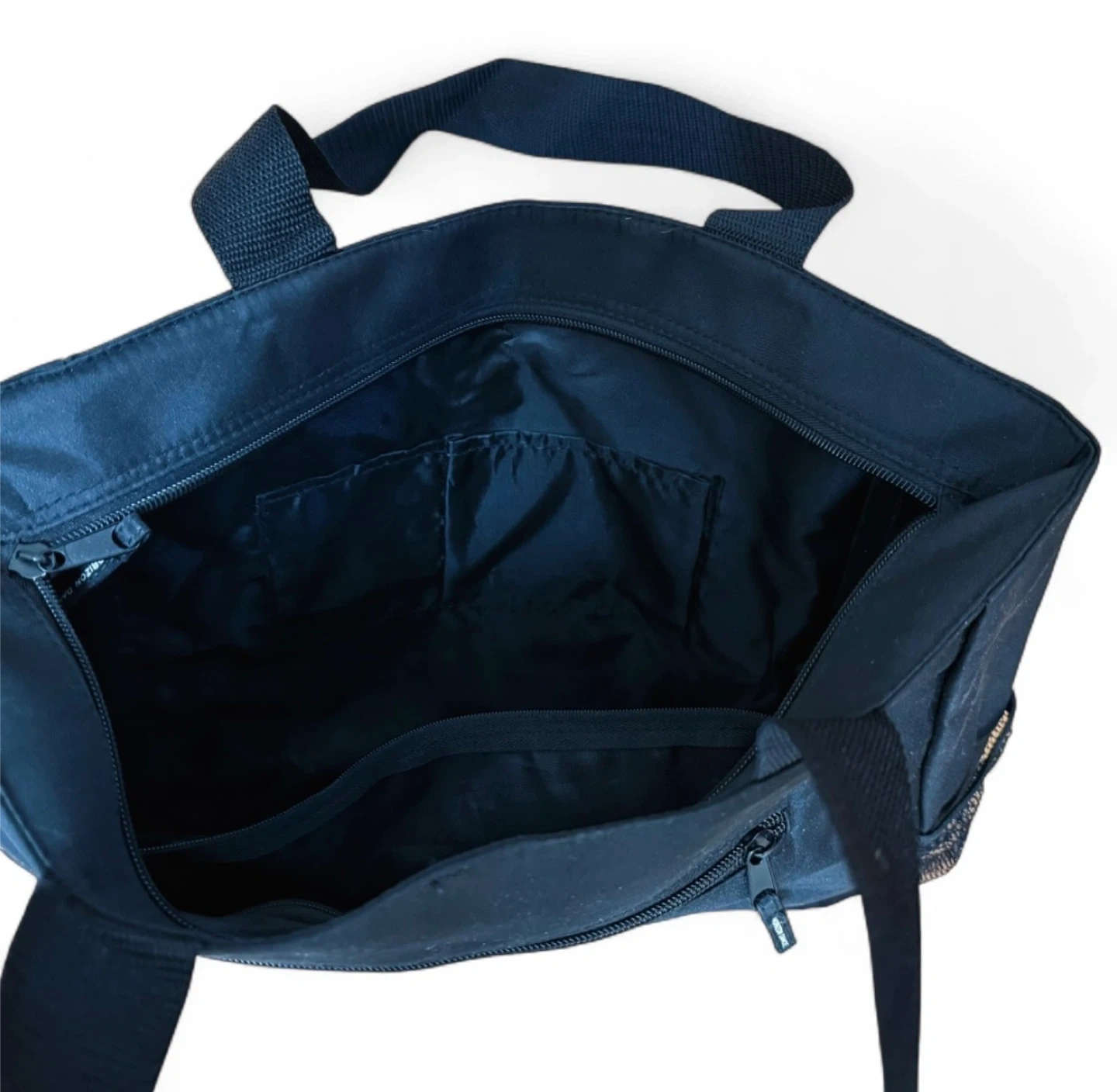 Preowned condition, needed a wash before the photos were taken which has since been done. Zippers work fine and it’s a sturdy bag with many compartments and a water bottle holder on the side.