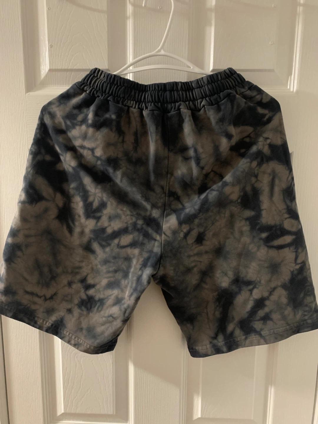 Selling a pair of tie dye shorts. They're in great condition and feature a comfortable elastic waistband with a drawstring. Perfect for casual wear!