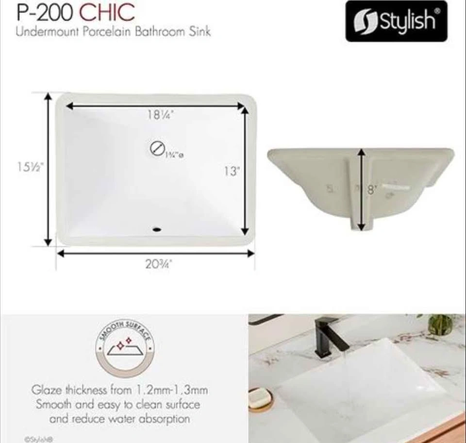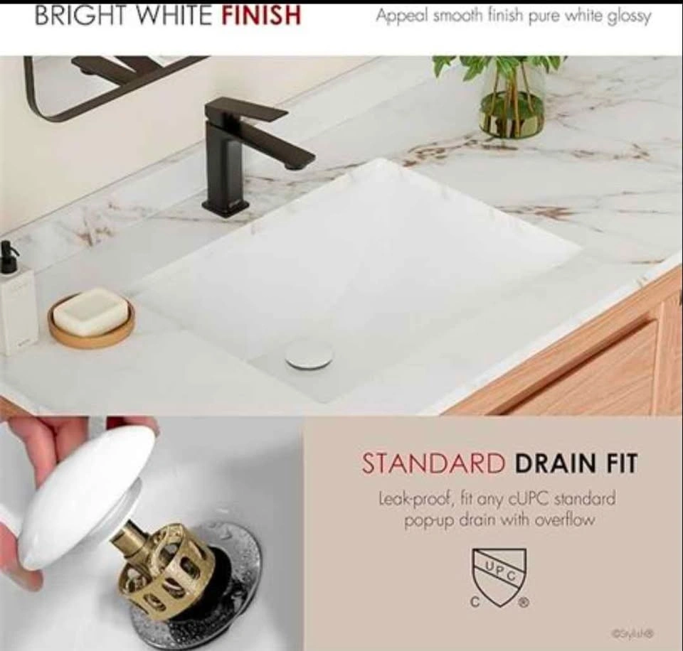 Stylish Porcelain Undermount Sink 20.75" x 15.5" x 8"