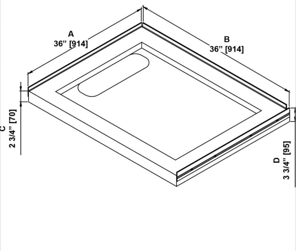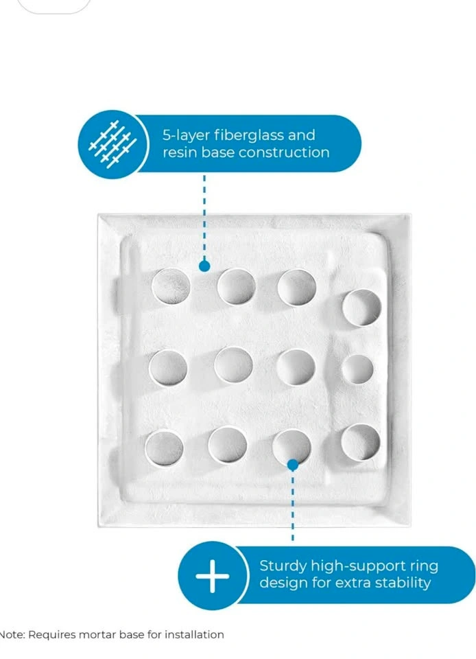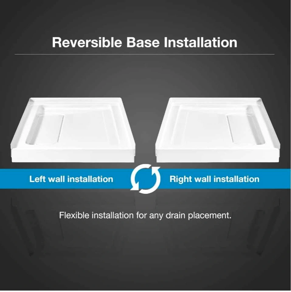 Standard profile 2.8-in high square base pan (36-in x 36-in) with hidden side drain.