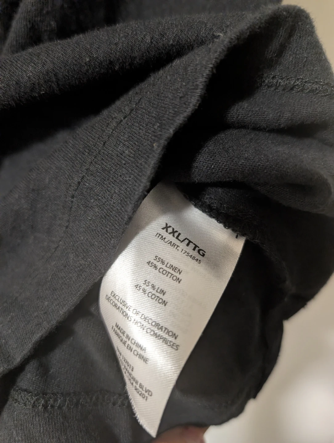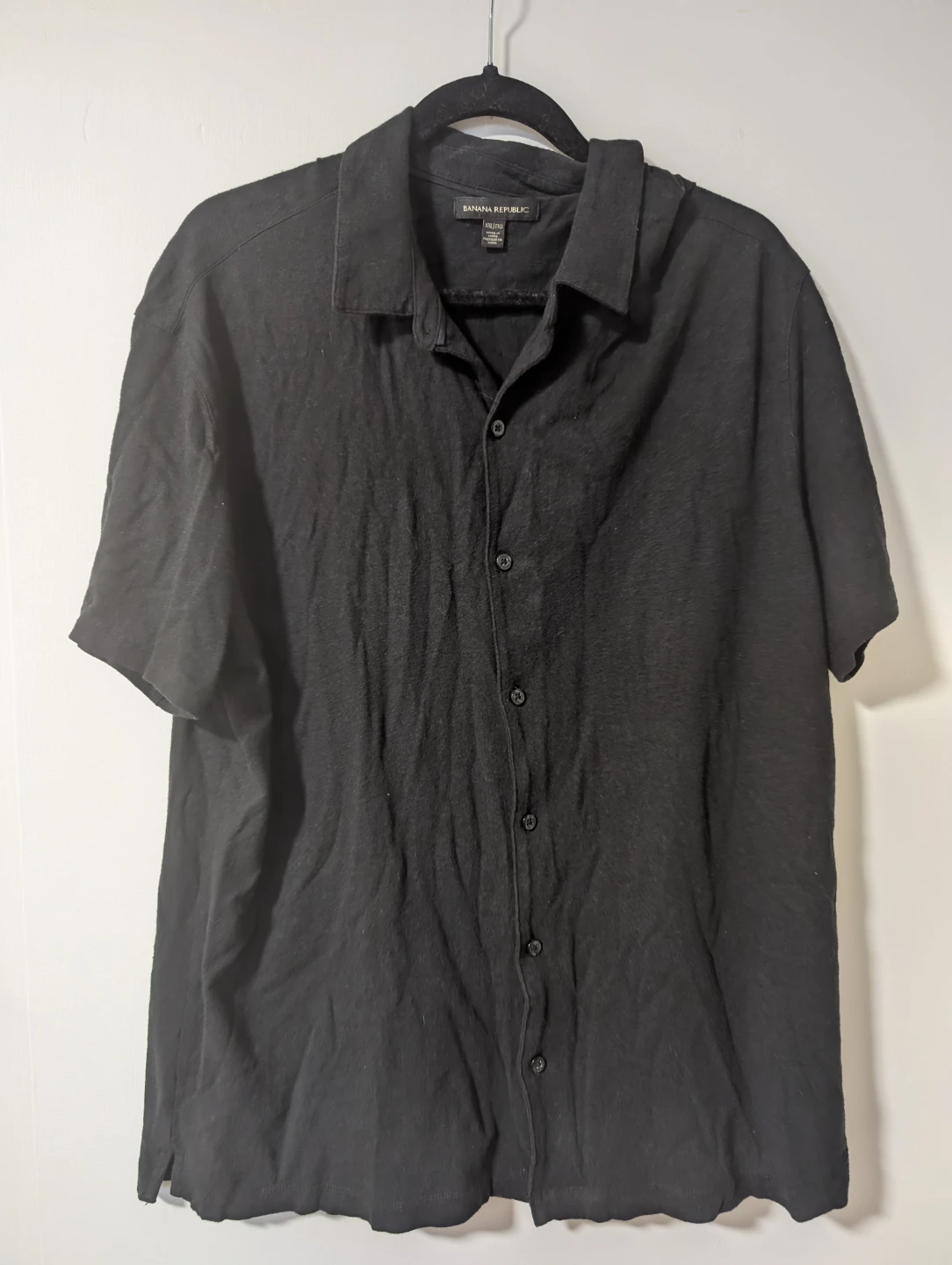 This is a Banana Republic shirt, size XXL. It's made of 55% linen and 45% cotton. The shirt is black and in great condition!