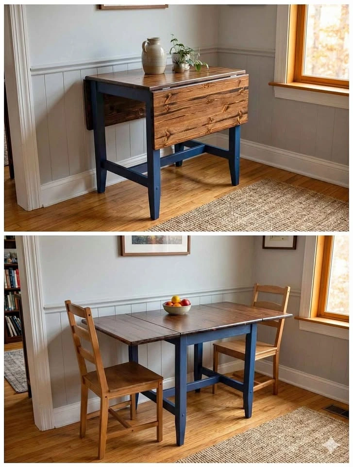 Space Saving: Features two drop-leaves that function perfectly. It can be used as a slim console table when folded down or opened up to seat 2-4 people comfortably.