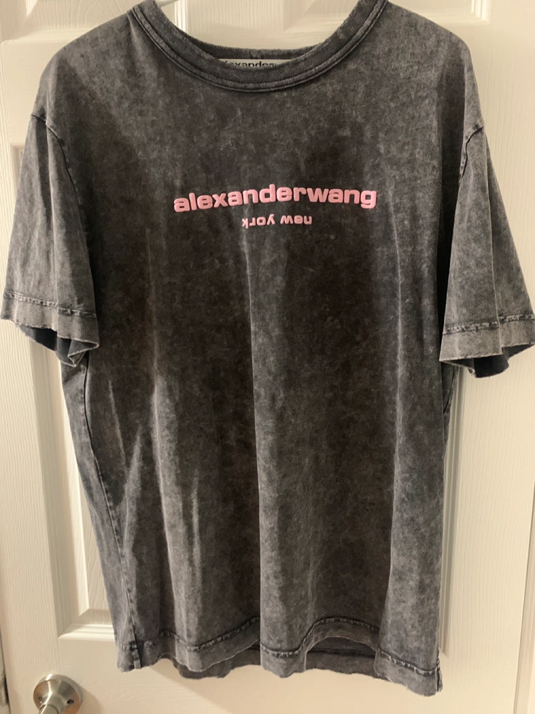 Selling an Alexander Wang T-shirt in grey! It's in great condition and ready for a new wardrobe. This stylish tee features the iconic Alexander Wang logo. Perfect for adding a touch of designer flair to your casual outfits