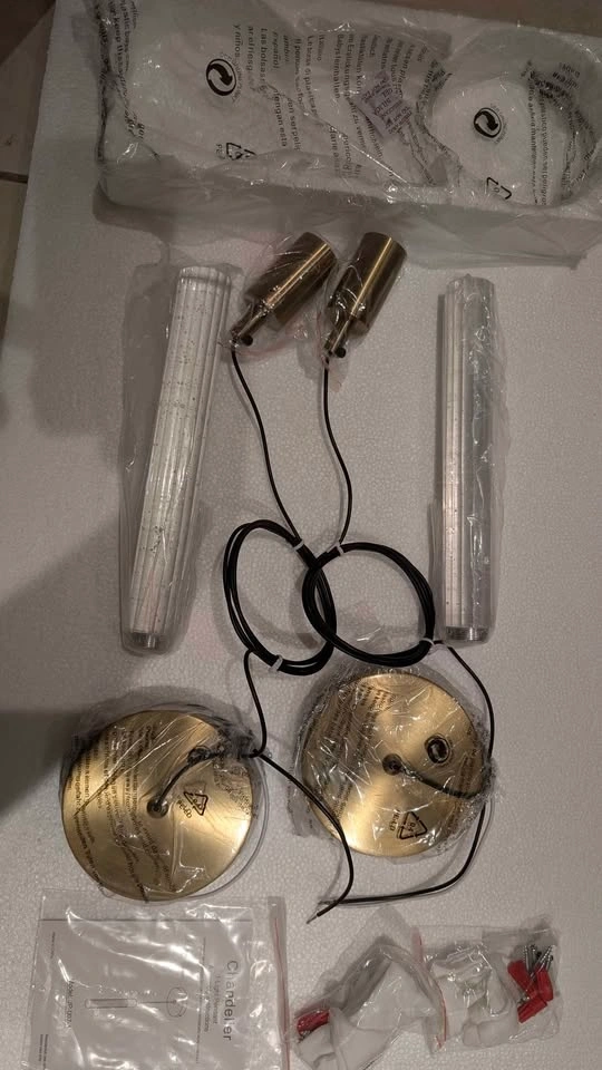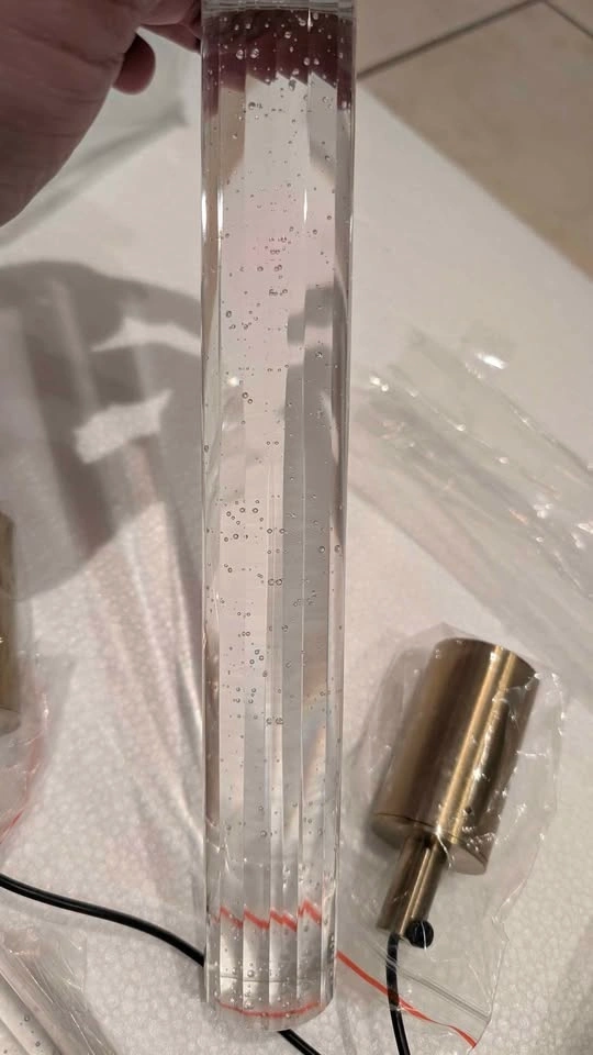 【Minimal modern style】This gold kitchen island pendant light, designed with gold brass finish and high light transmittance bubble crystal column, can be used as a fashionable and high-end kitchen pendant lights, bar or living room dining room light.