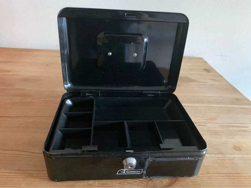 Garrison Heavy-Duty Steel Cash Box With Carrying Handle, Includes a key, Black