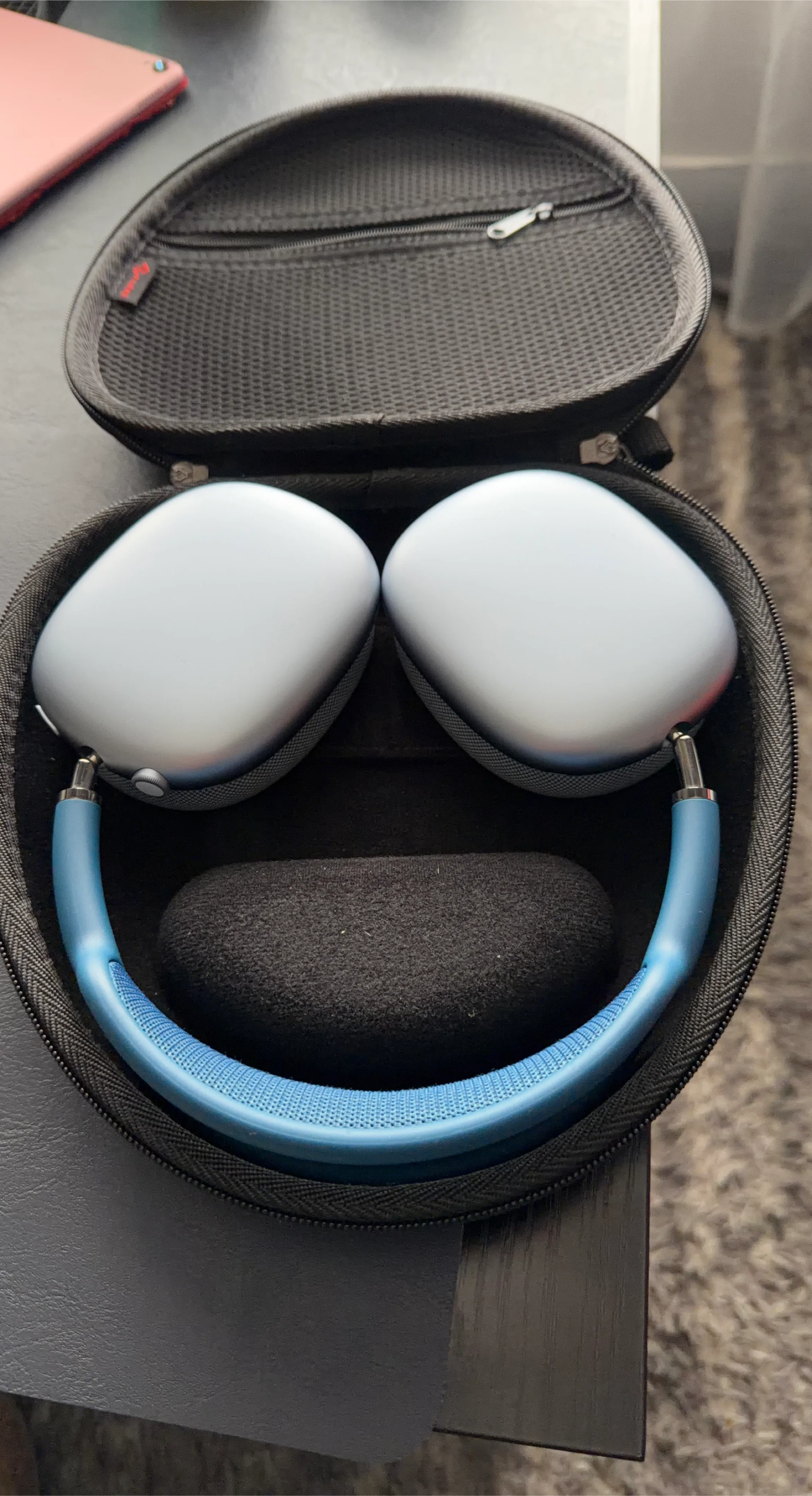 Selling a pair of Apple AirPods Max in blue! They come with the original case. These headphones are known for their excellent sound quality and noise cancellation. Perfect for listening to music or podcasts on the go