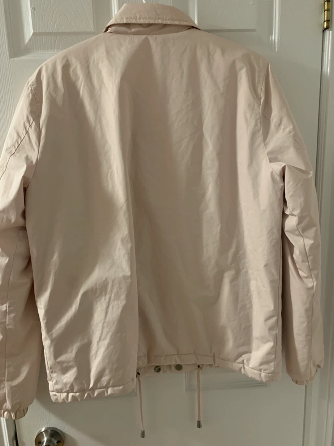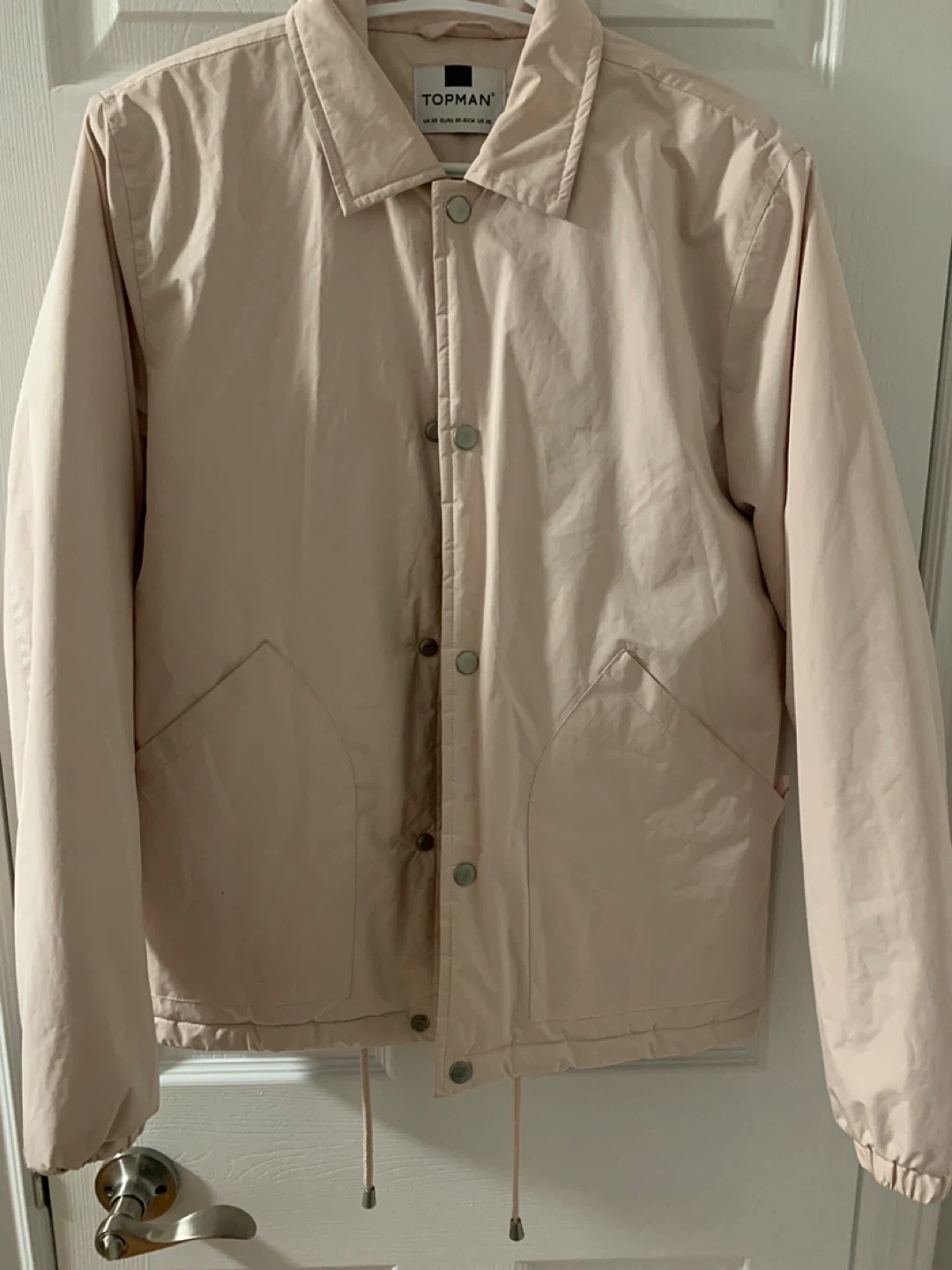 Selling a Topman coach jacket in a light beige colour. It's a size medium and has a classic, casual style. Perfect for layering!