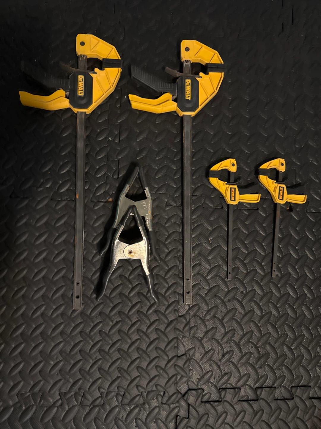 Selling a set of DeWalt bar clamps! Includes two large and two small bar clamps, plus one spring clamp. Great for woodworking or other projects