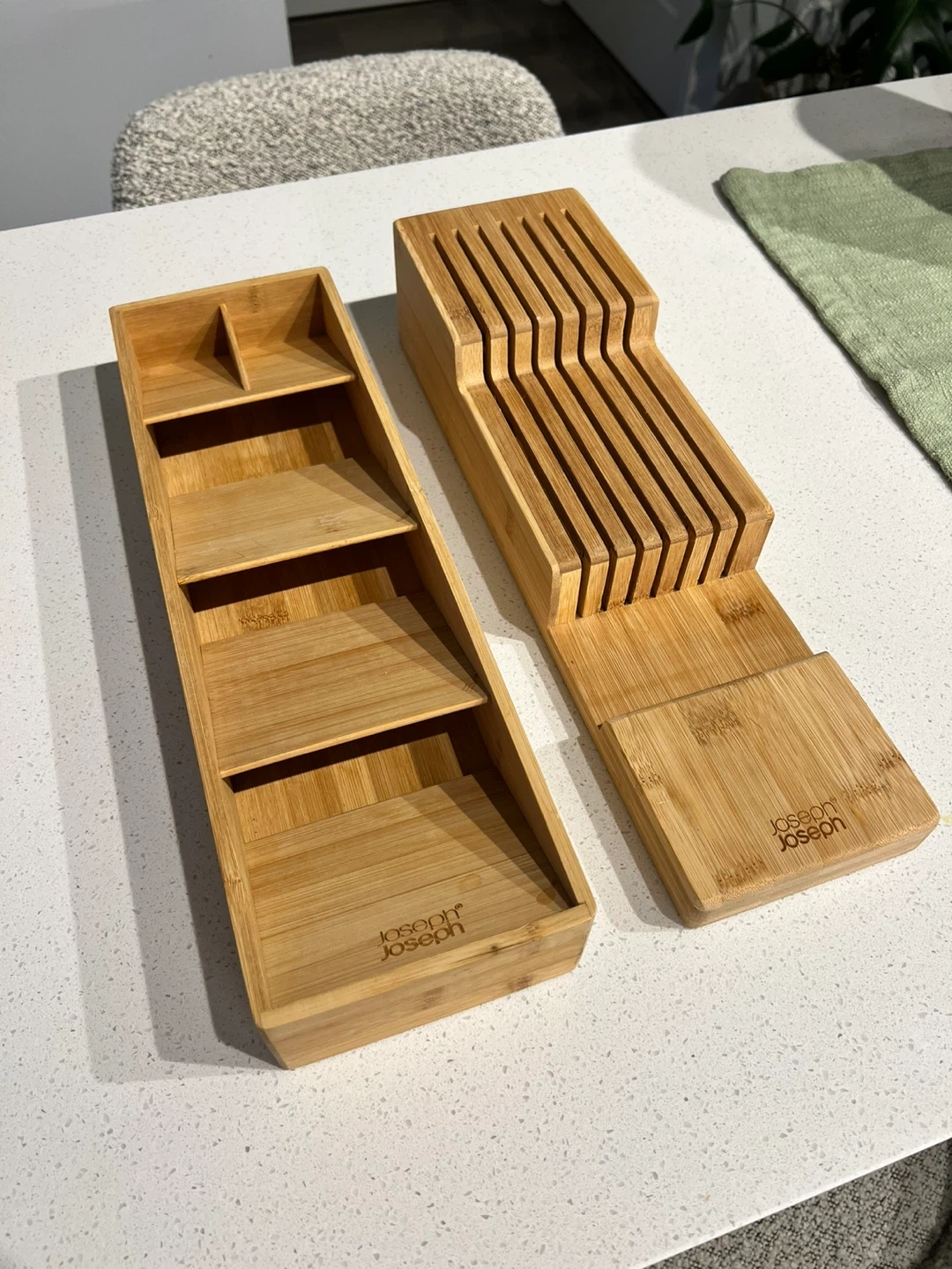 Selling a matching set of 2 bamboo drawer organizers by Joseph Joseph.