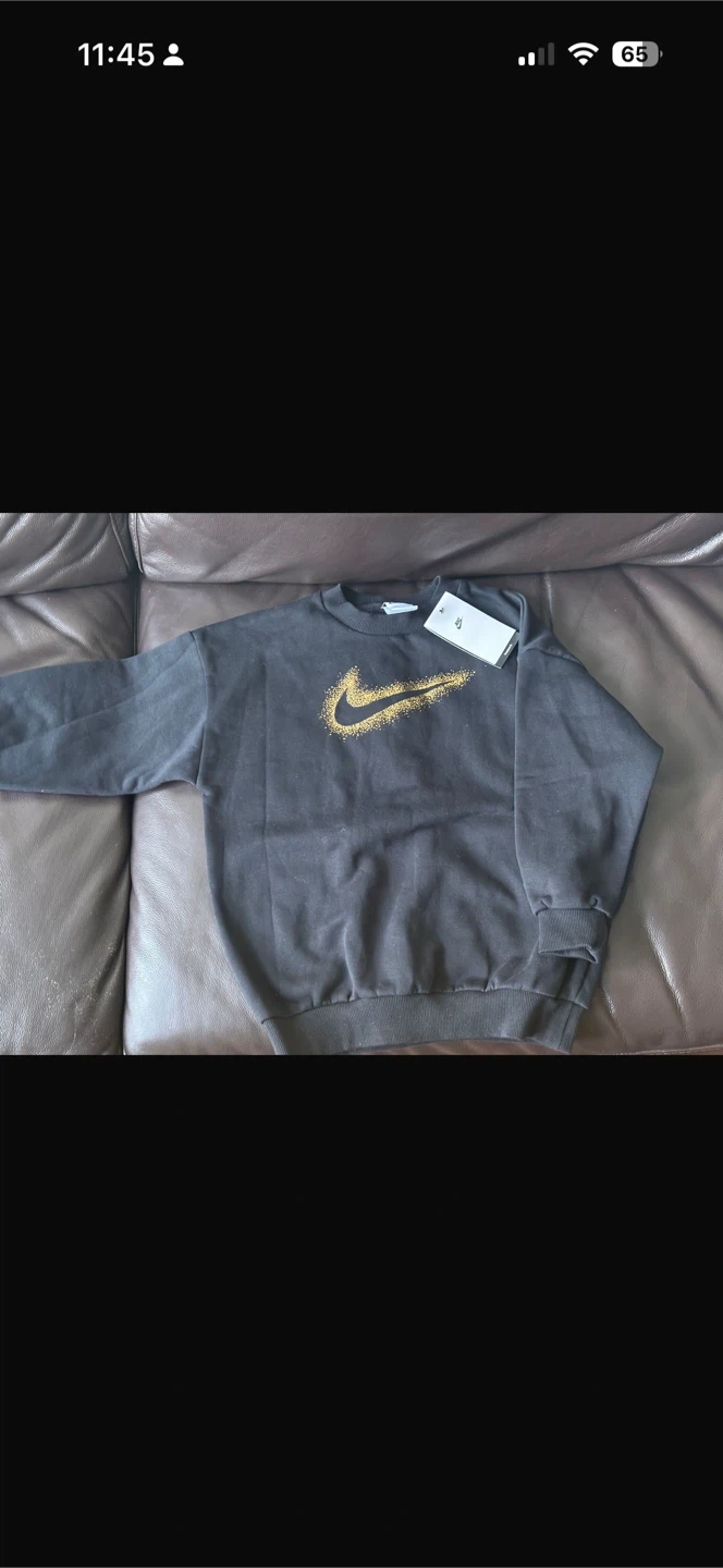 This is a Nike kids' sweatshirt in size S. It features the Nike logo on the front. The suggested retail price was $60.00, but it was on sale for $39.99. The style number is DV9374-010.