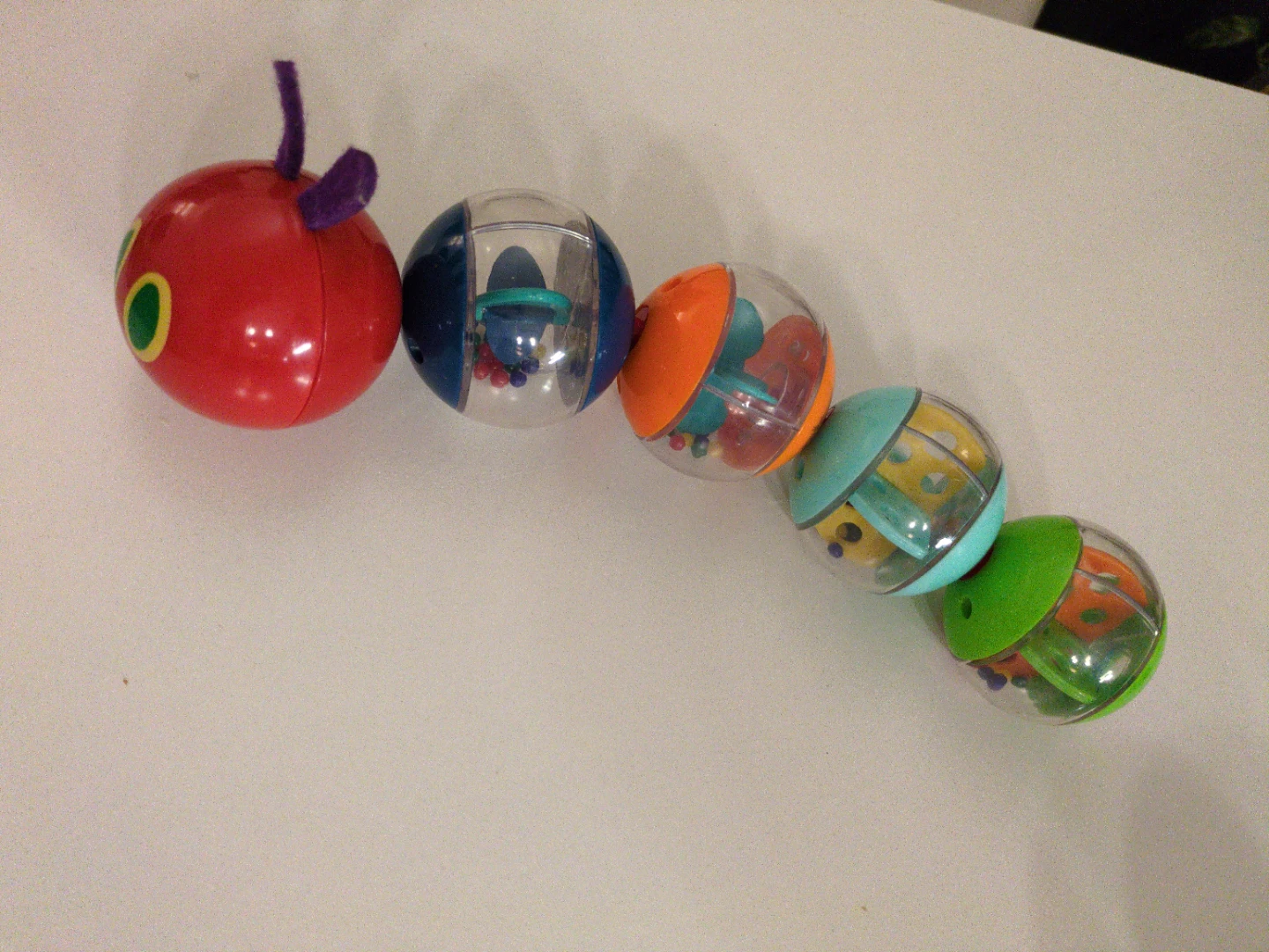 - Eric Carle colourful caterpillar shaker toy, balls are removable individual shakers