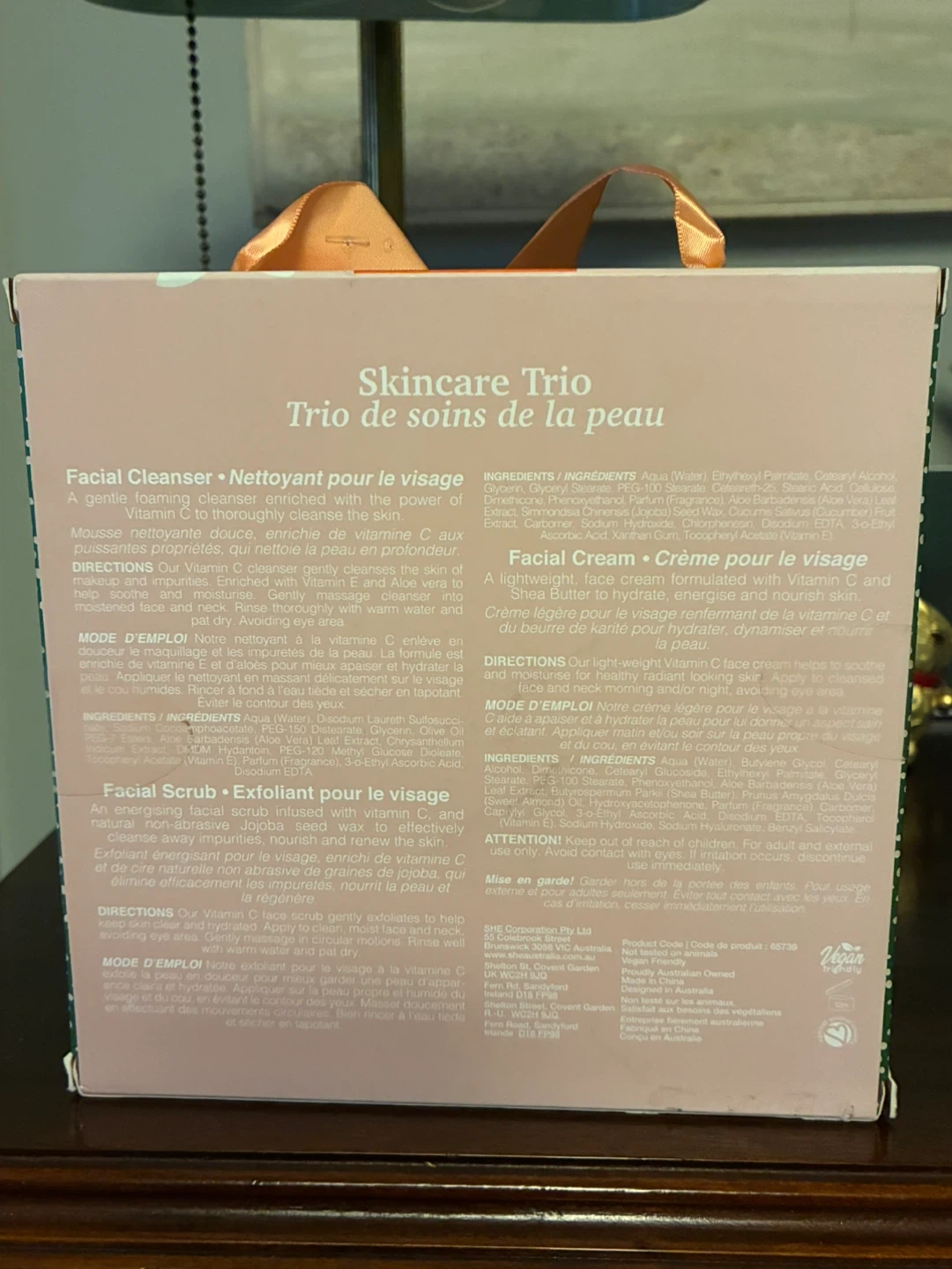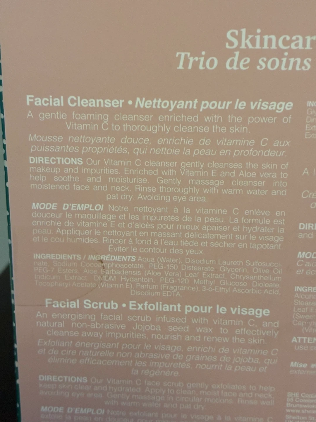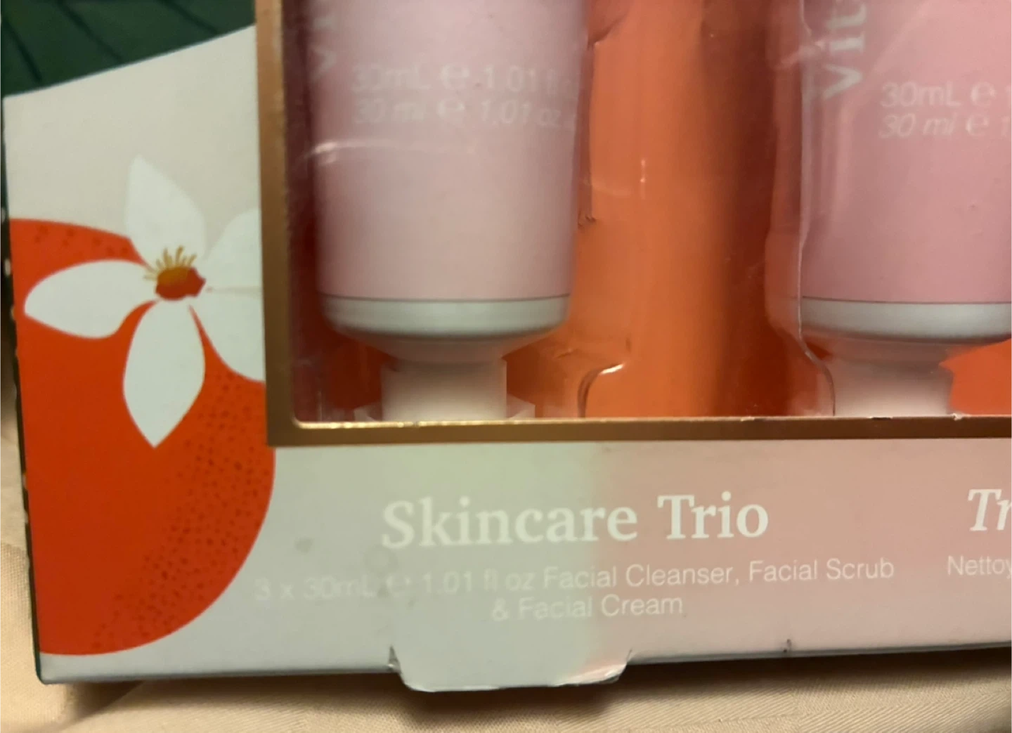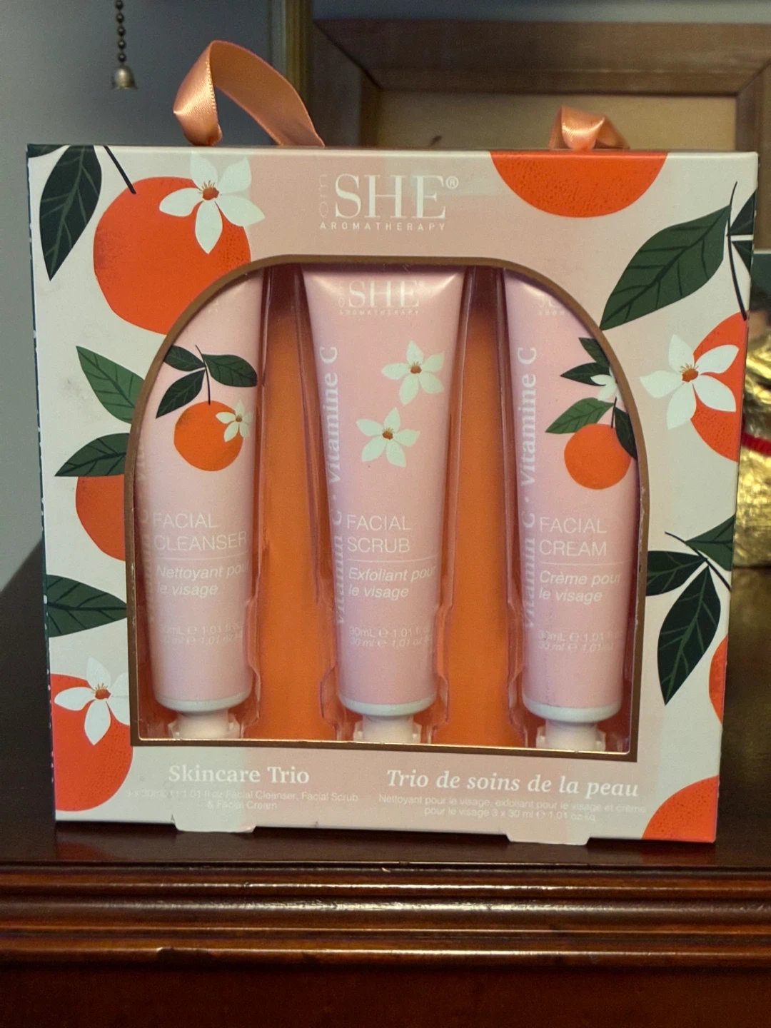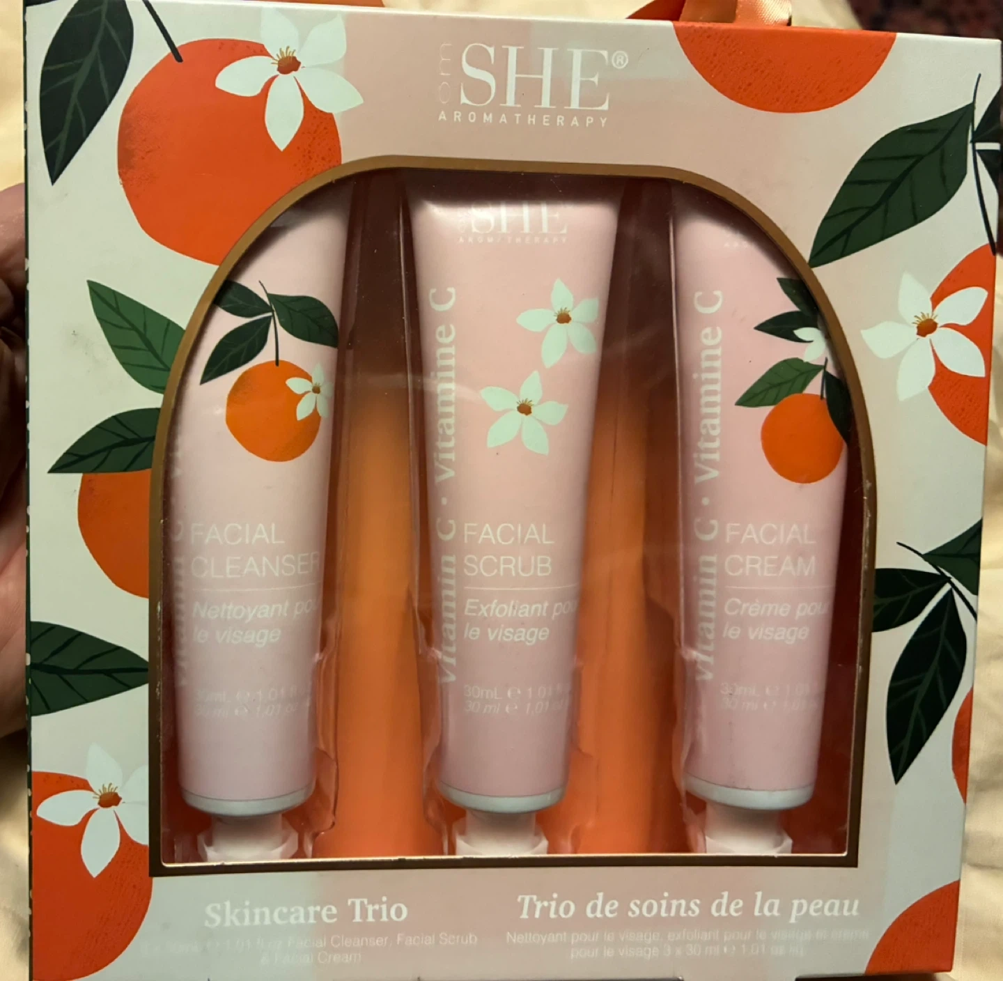 $4 NIB Om SHE Aromatherapy Skincare Trio set cosmetics facial scrub cleaner cream Donlands O'Connor