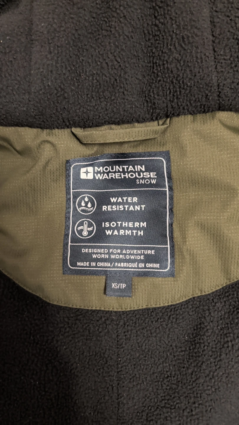 Selling a likely new Mountain Warehouse winter jacket in olive and black. It's in great condition and perfect for staying warm this winter! It's a stylish and functional piece for your wardrobe. Size: XS - Tall
