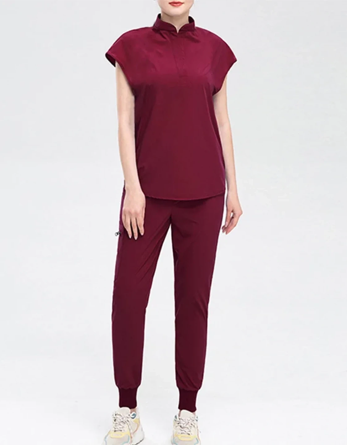 Burgundy Scrub Set - Top & Jogger Pants