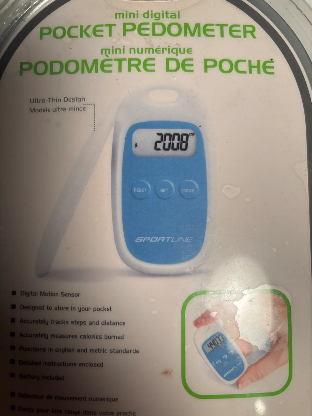 I'm selling a brand new Sportline mini digital pocket pedometer! It's still in the original packaging.