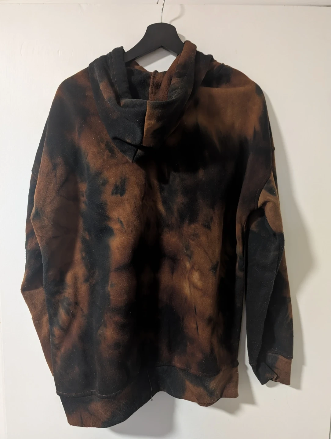 Street Wear Society hoodie featuring a cool Los Angeles design! It's a size medium with a unique tie-dye look in brown and black. Perfect for adding some style to your wardrobe