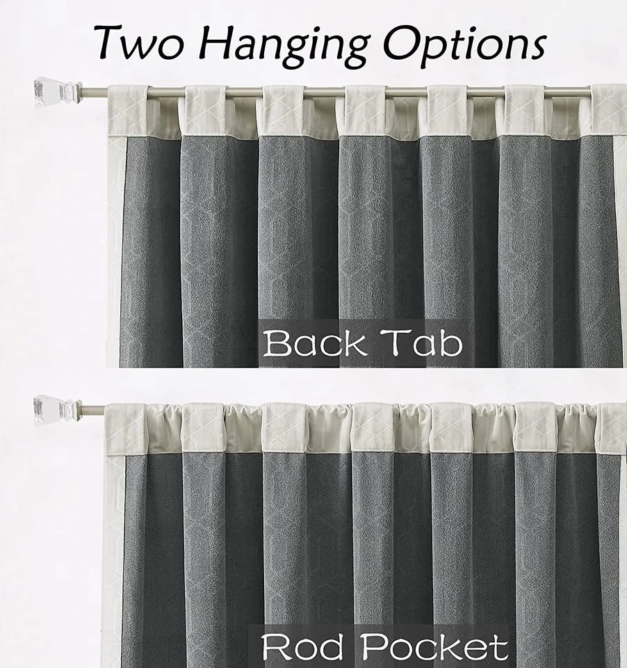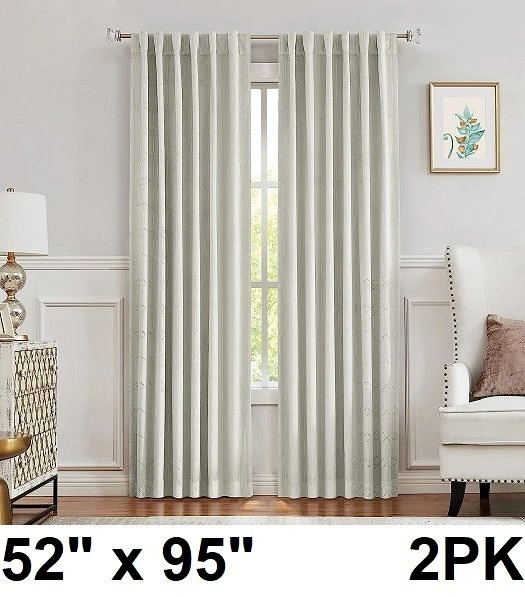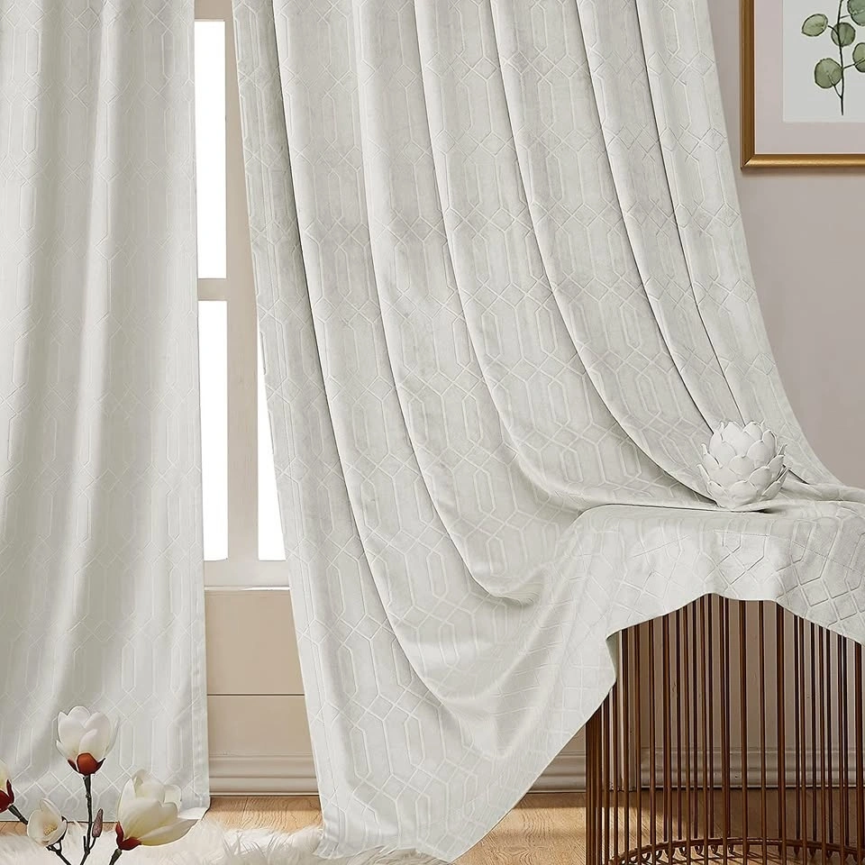 Greyish Ivory Velvet Blackout Curtain Panels 60% Room Darkening Window Treatment Drape Sets Rod Pocket Back Tabs Geo Embossed Trellis Pattern, for Living Room, Bedroom, Nursery, Kids Room, 52"x95"x2.