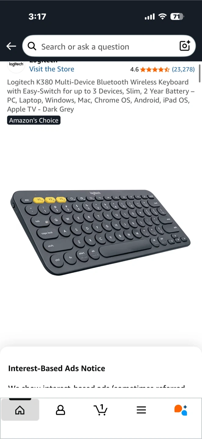 Selling a Logitech K380 Multi-Device Bluetooth Wireless Keyboard in dark grey! It's slim and perfect for using with up to 3 devices. It has a 2-year battery life and is compatible with PC, Laptop, Windows, Mac, Chrome OS, Android, and iPad OS