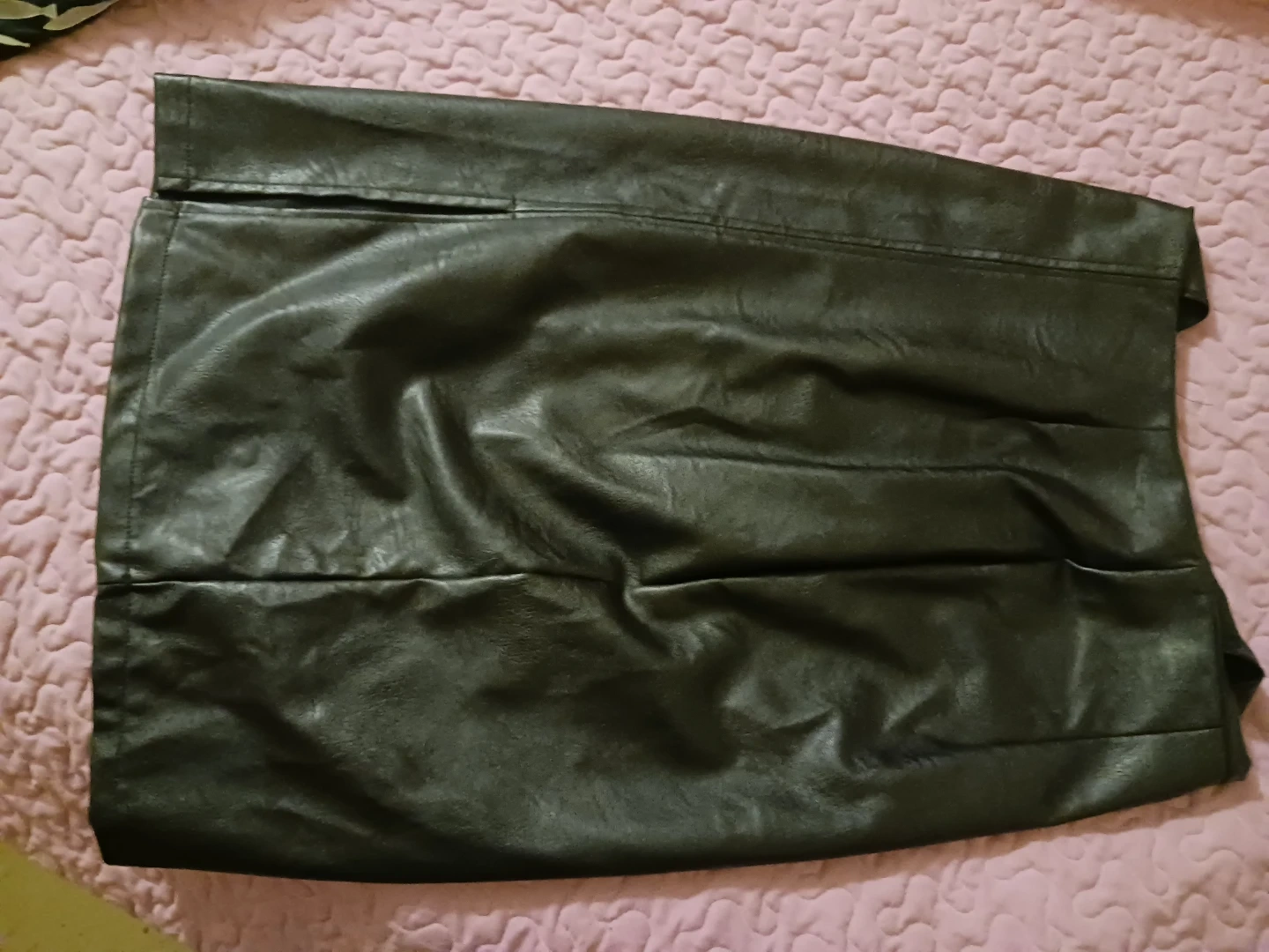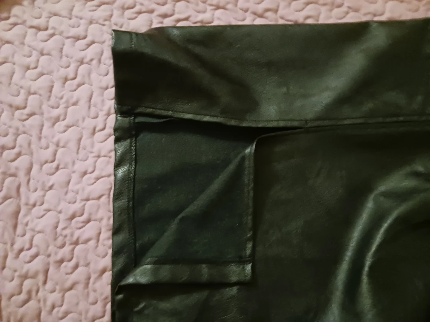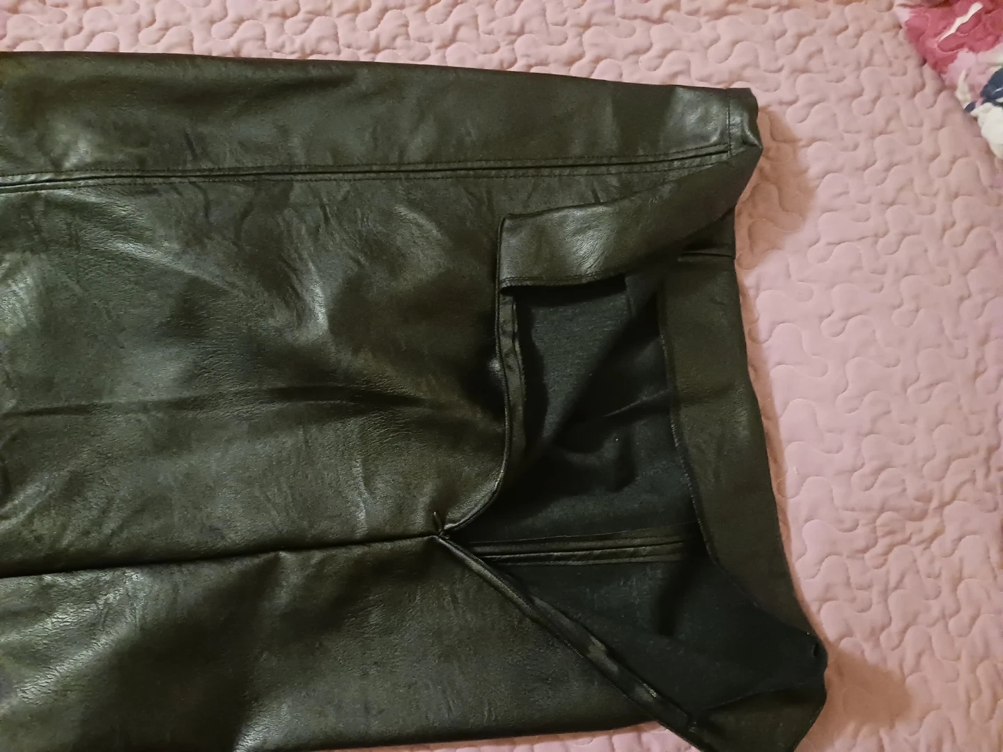 - Size28" waist, hidden zipper, faux leather